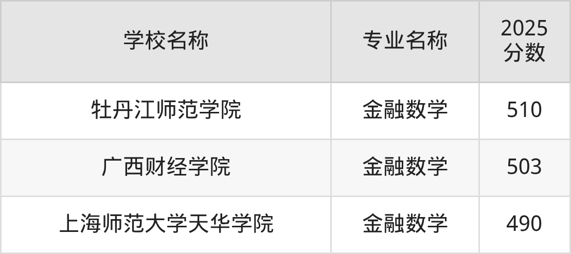 | 温州商学院 | 金融数学 | 490 |