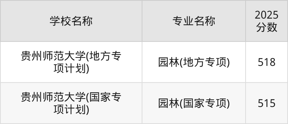 | 贵州师范大学(地方专 项计划) | 园林(地方专项) | 473 |