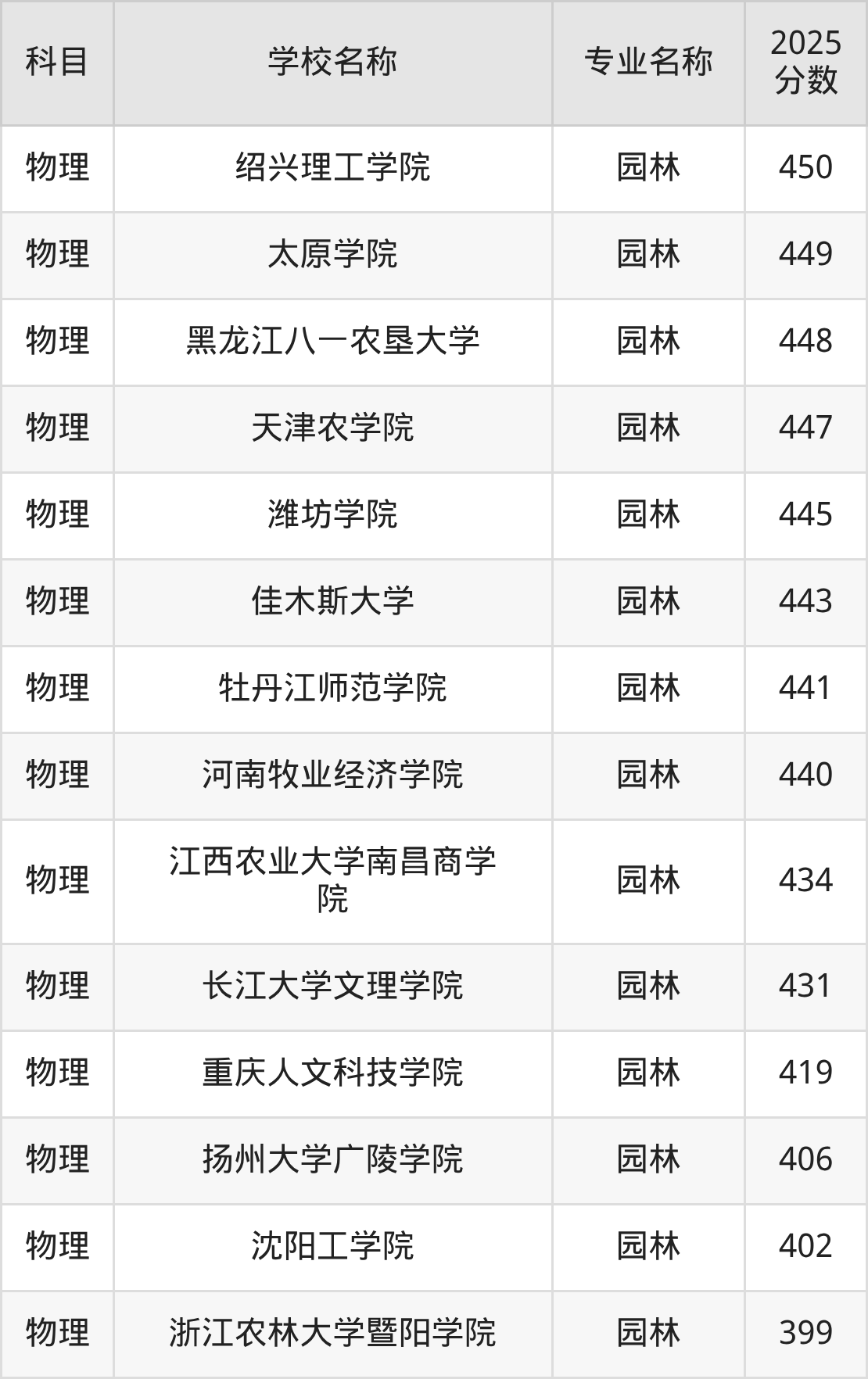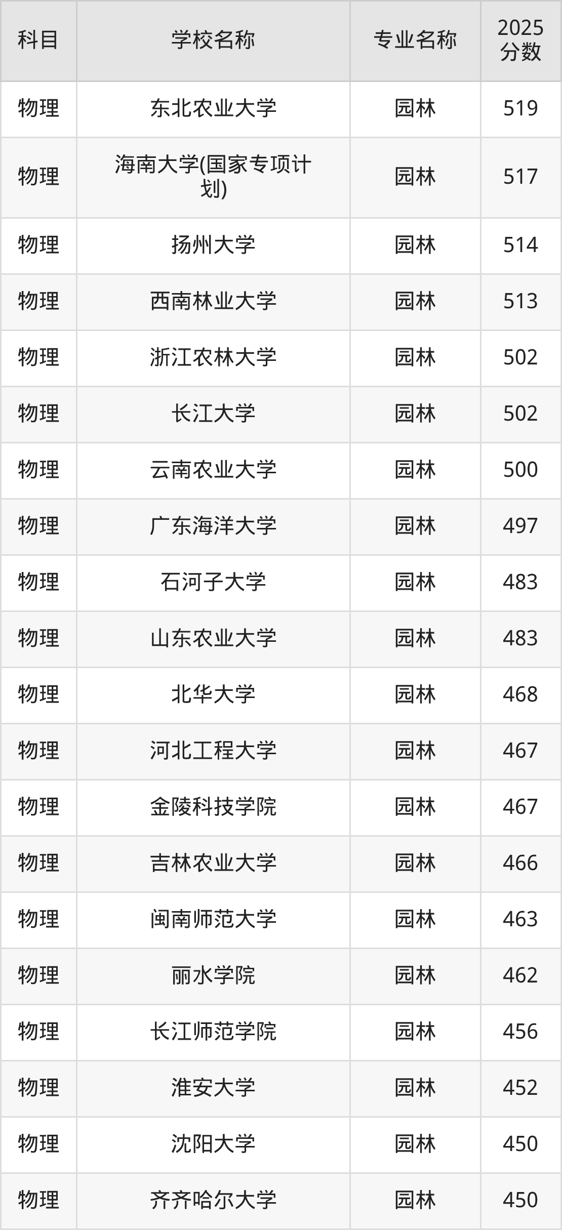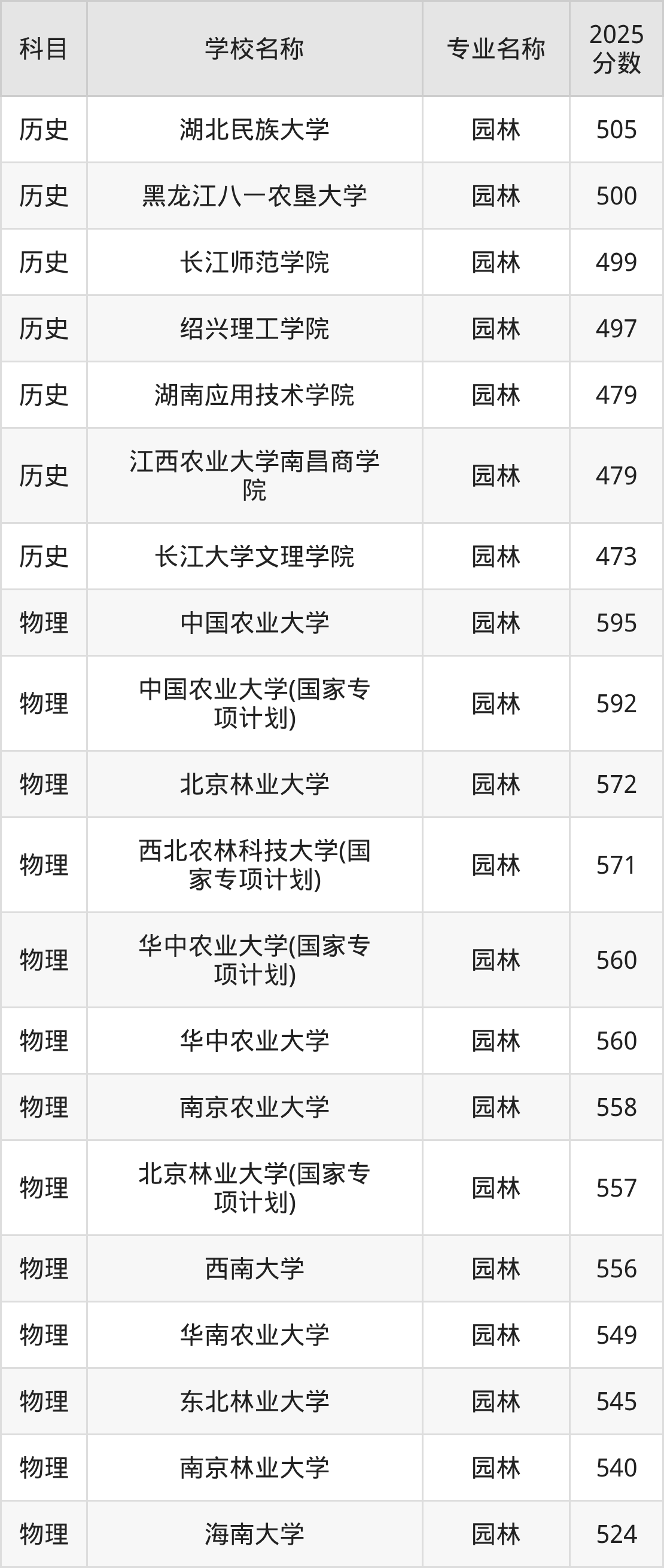 下文将为大家展示贵州省大学园林专业2025年在贵州高考的最低录取分数线!