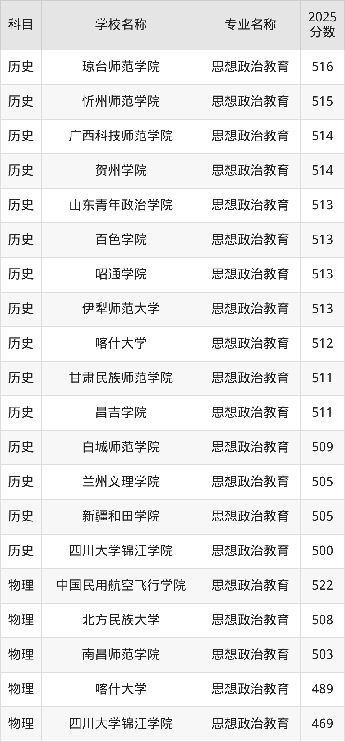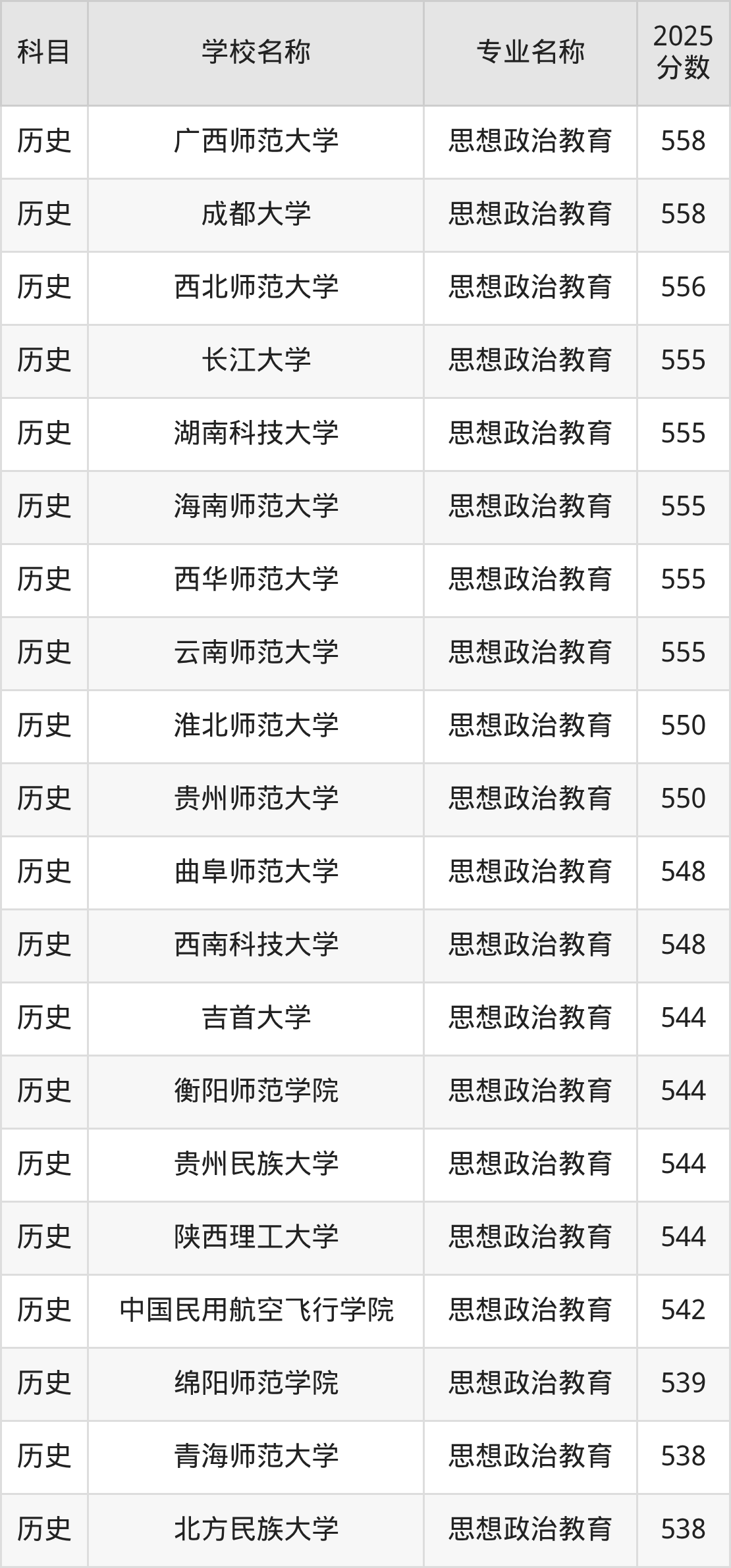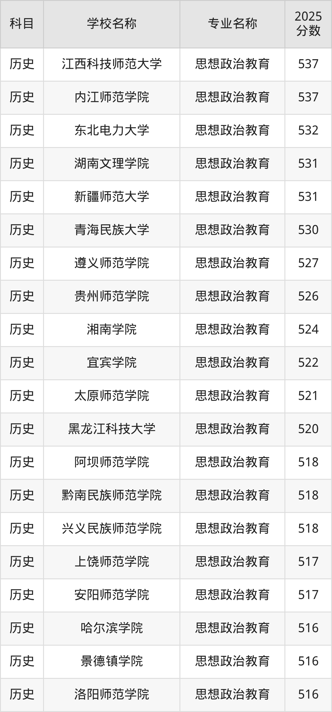 下文将为大家展示重庆市大学思想政治教育专业2025年在重庆高考的最低录取分数线!