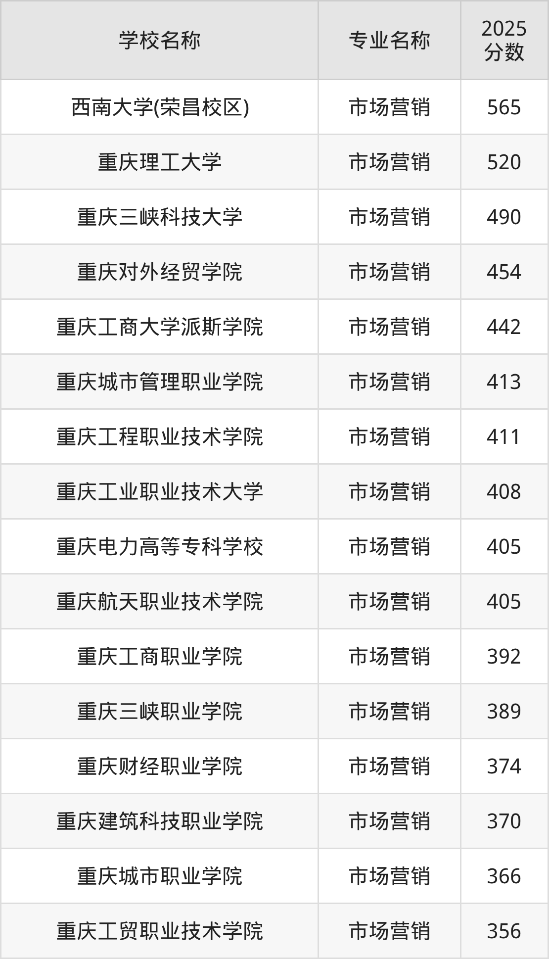 | 重庆三峡职业学院 | 市场营销 | 398 |
