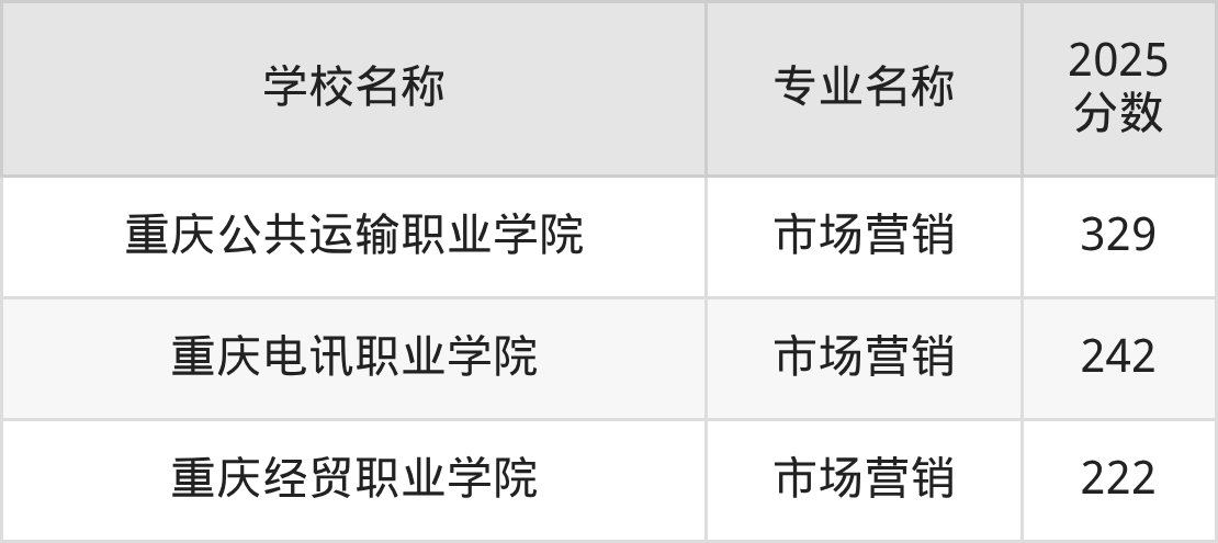 | 重庆经贸职业学院 | 市场营销 | 329 |