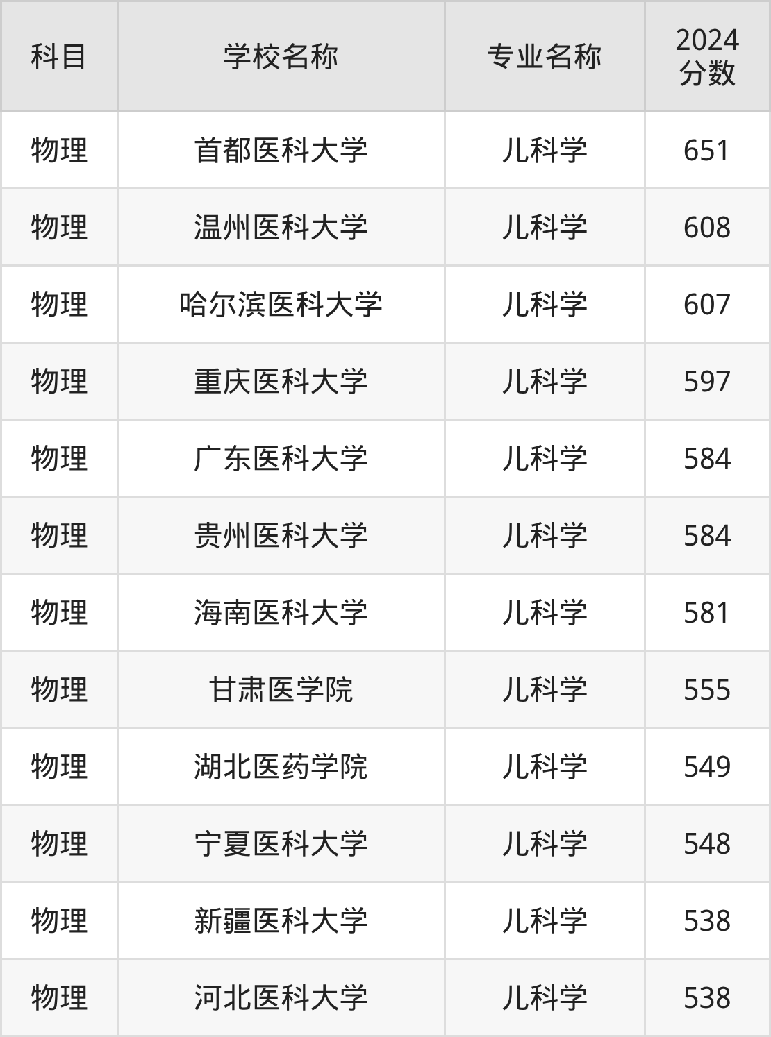 通过上文大家可以知晓,在江苏省内招儿科学专业的院校数量较少,所以下文将为2026届高考生继续展示:省外大学的儿科学专业2024年在江苏高考的录取情况,包含首都医科大学、温州医科大学、哈尔滨医科大学、重庆医科大学、广东医科大学。