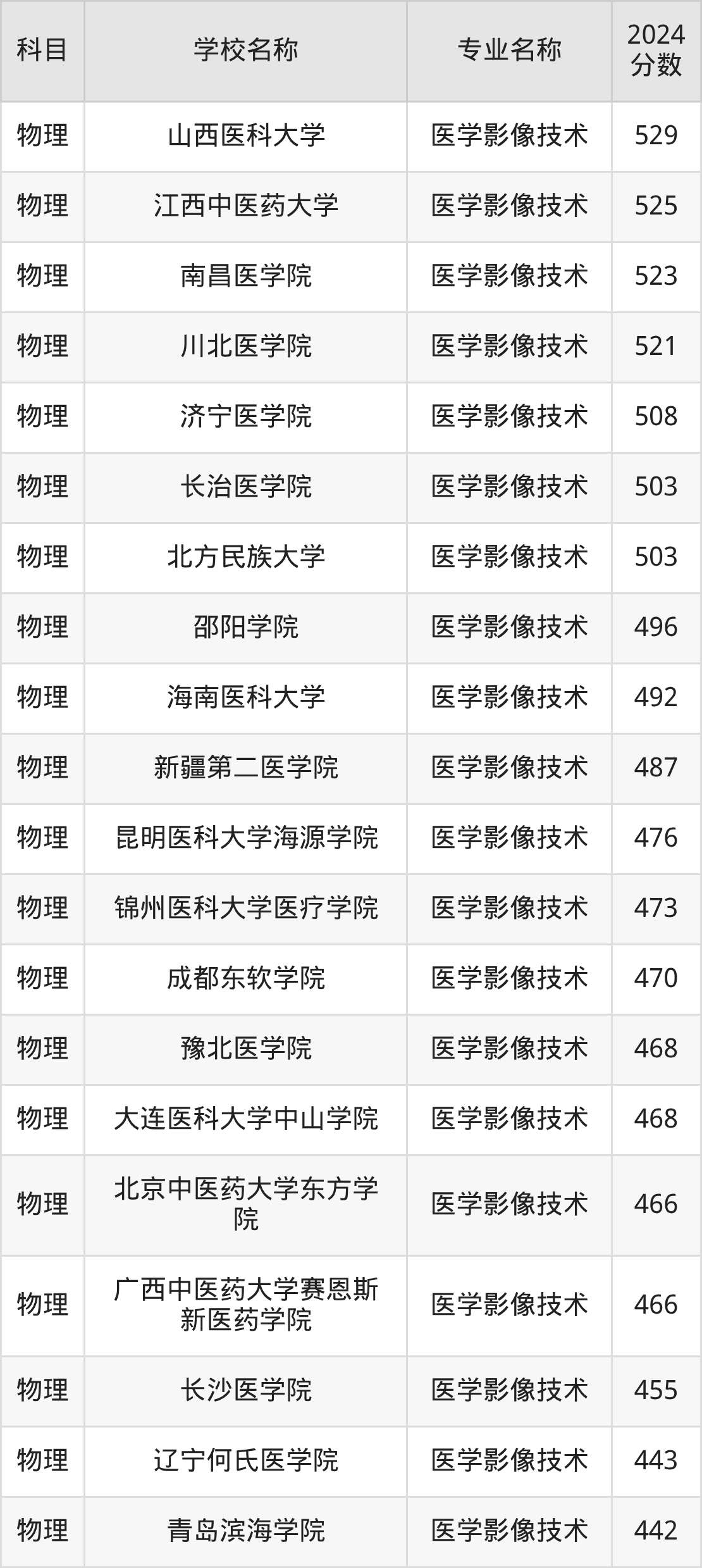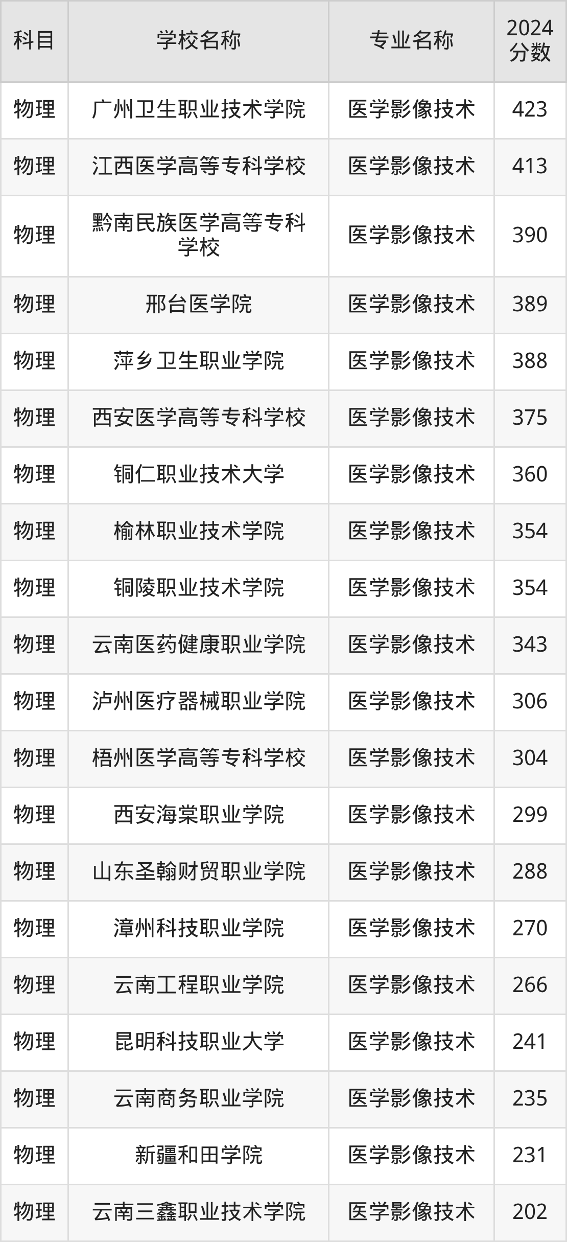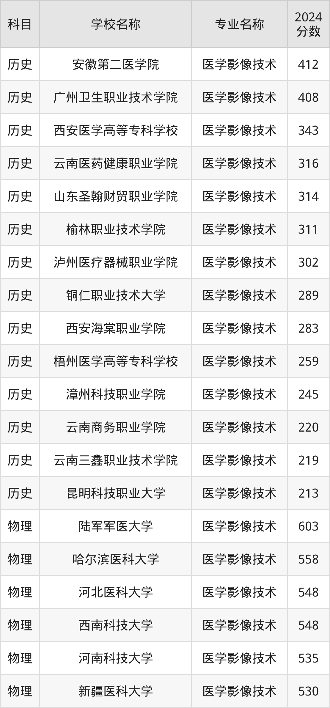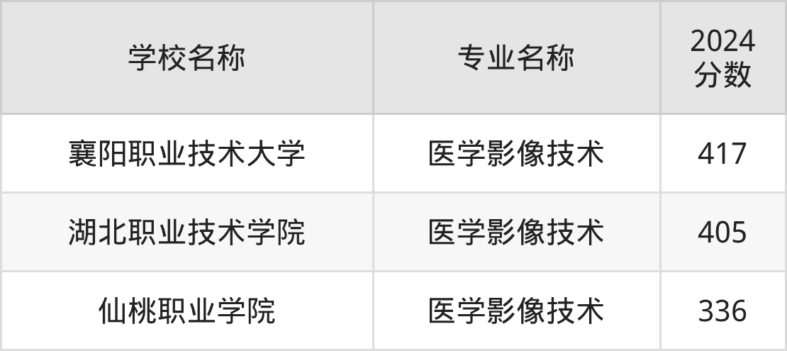 | 湖北职业技术学院 | 医学影像技术 | 406 |