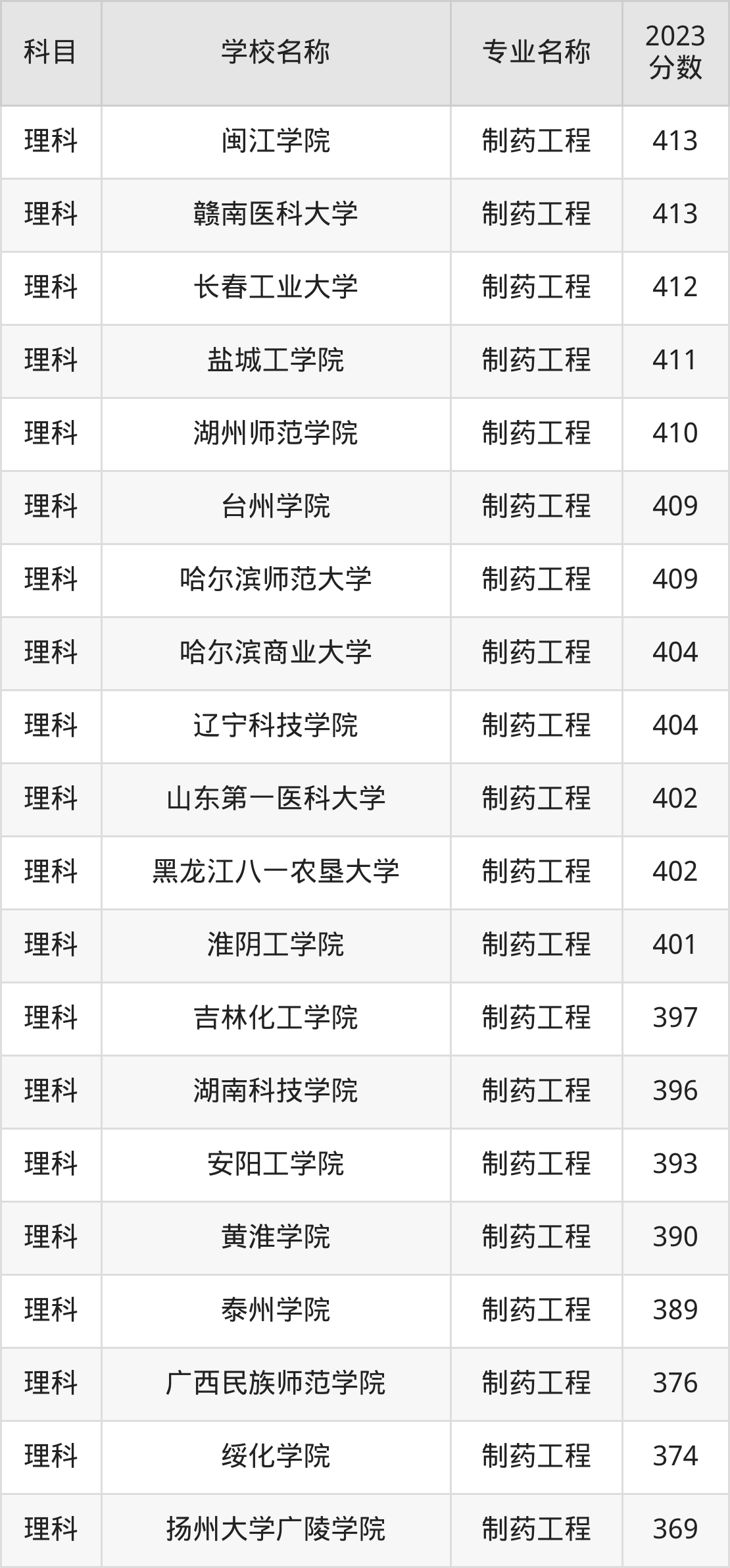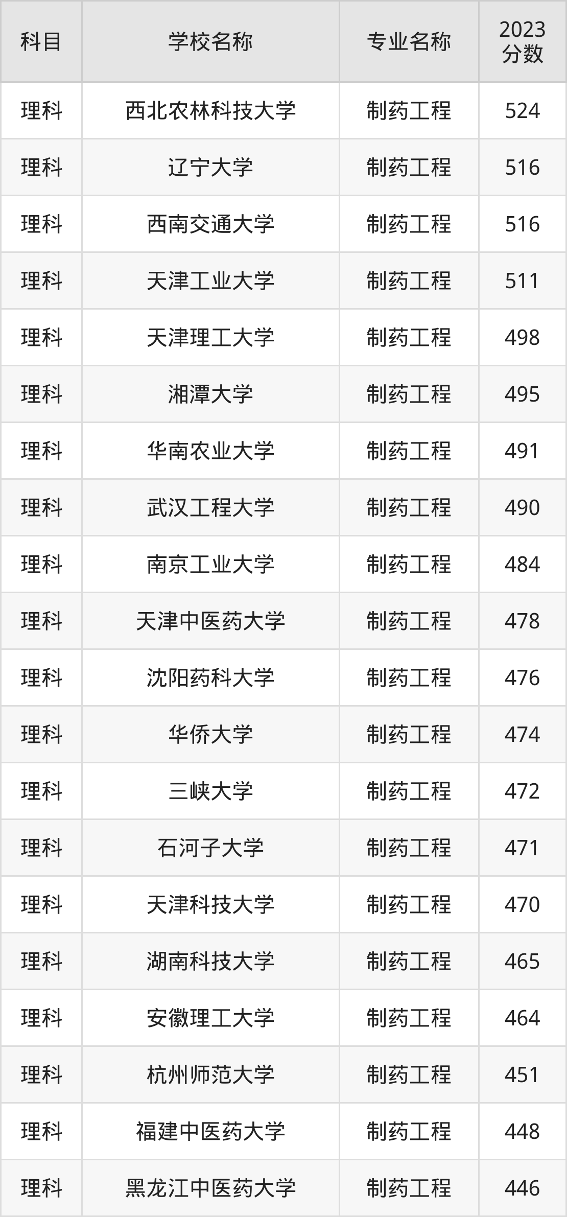 下文将为大家展示甘肃省大学制药工程专业2023年在甘肃高考的最低录取分数线!