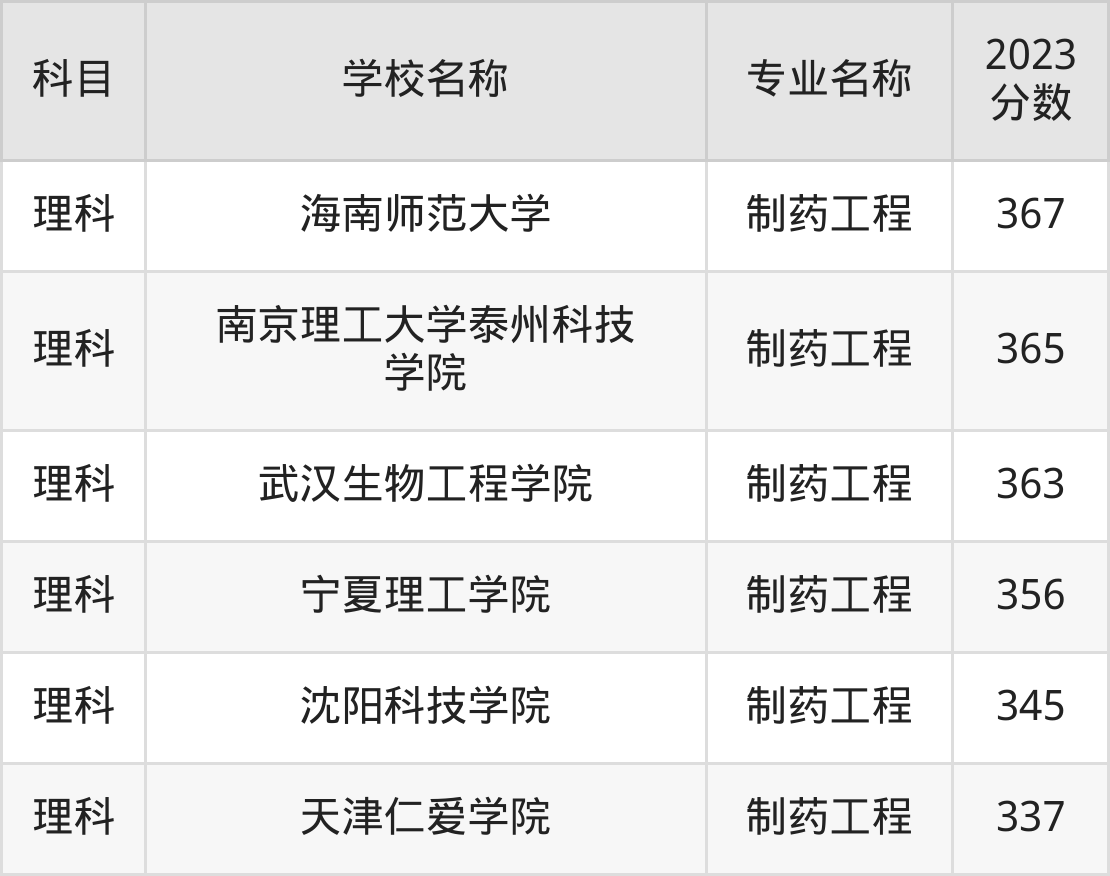 | 兰州信息科技学院 | 制药工程 | 337 |