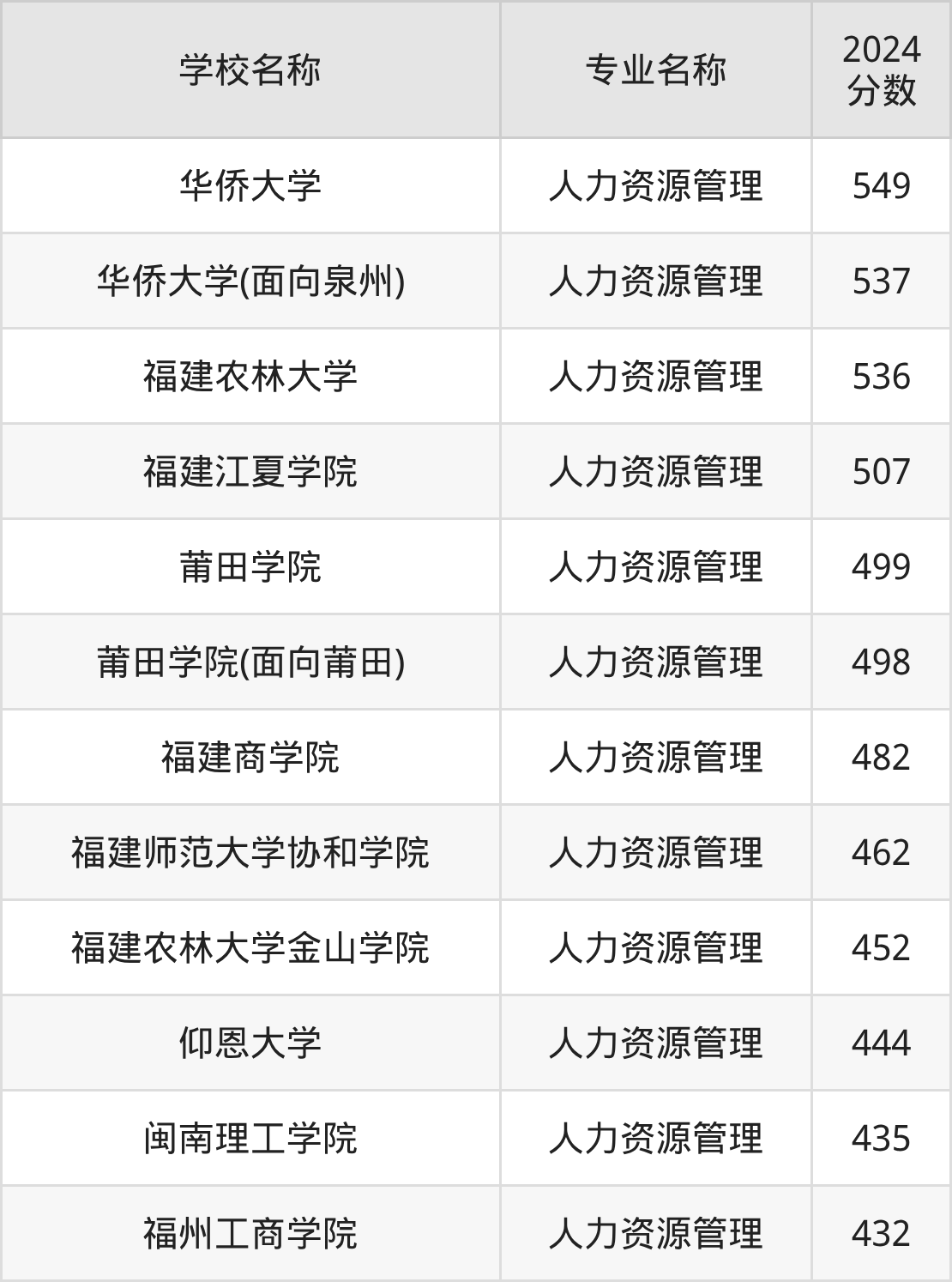下文将为大家展示福建省大学人力资源管理专业2024年在福建高考的最低录取分数线!