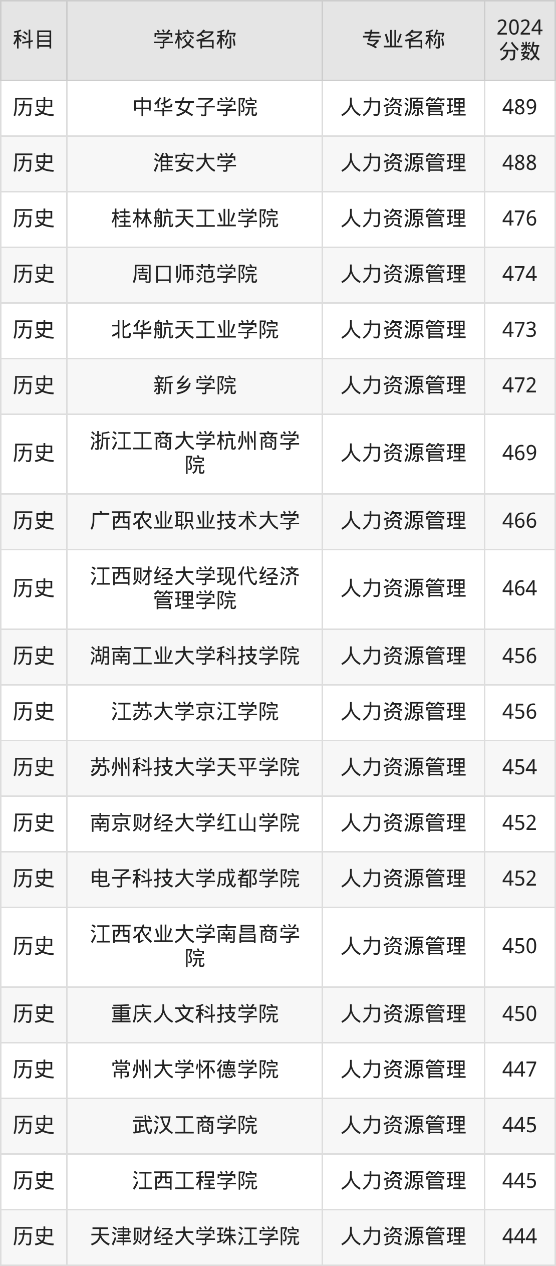 | 福州工商学院 | 人力资源管理 | 455 |