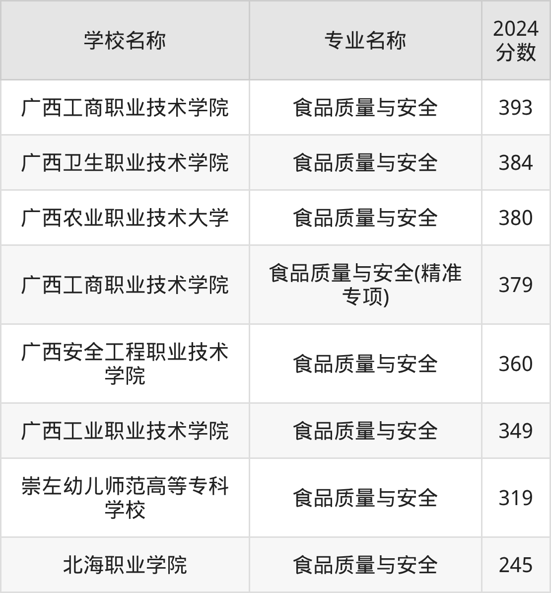 | 广西工商职业技术学院 | 食品质量与安全 | 377 |
