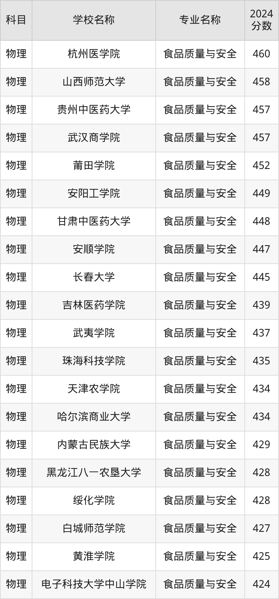 | 学校名称 | 专业名称 | 2024 分数 |