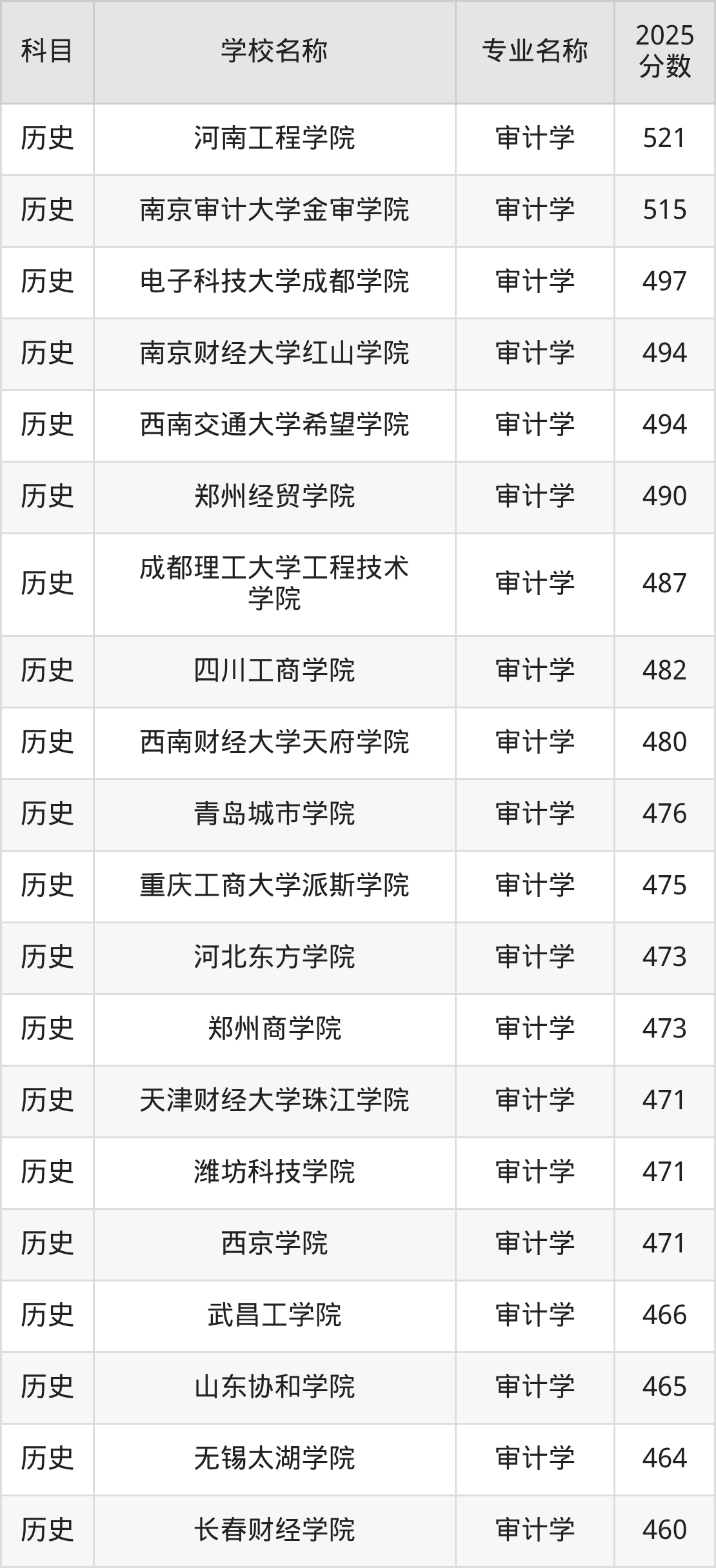 | 山西应用科技学院 | 审计学 | 450 |