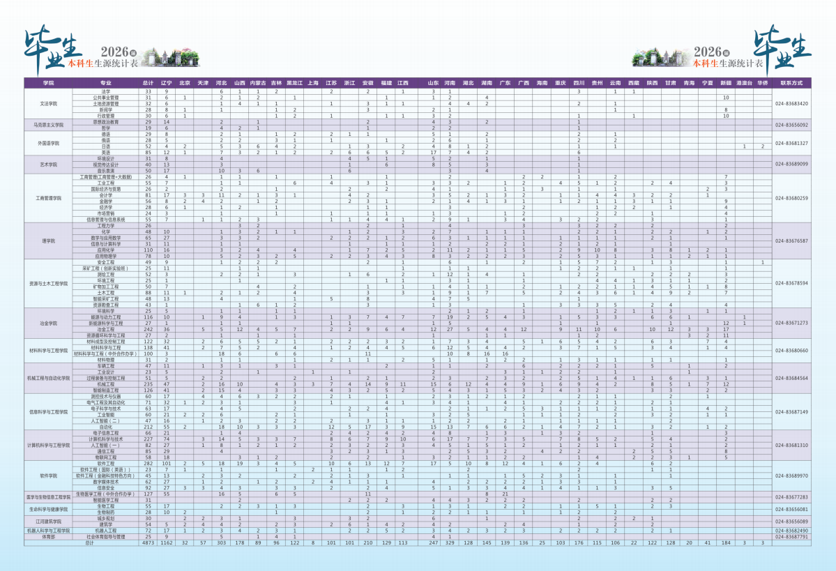 下方表格展示的是东北大学的各个二级学院的毕业生人数、及本科各专业的毕业生人数汇总!