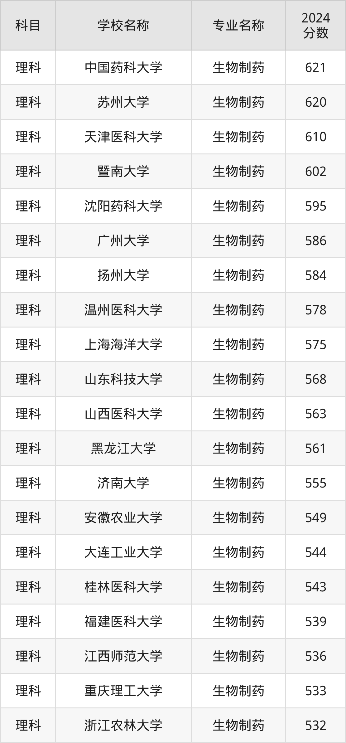 | 学校名称 | 专业名称 | 2024 分数 |