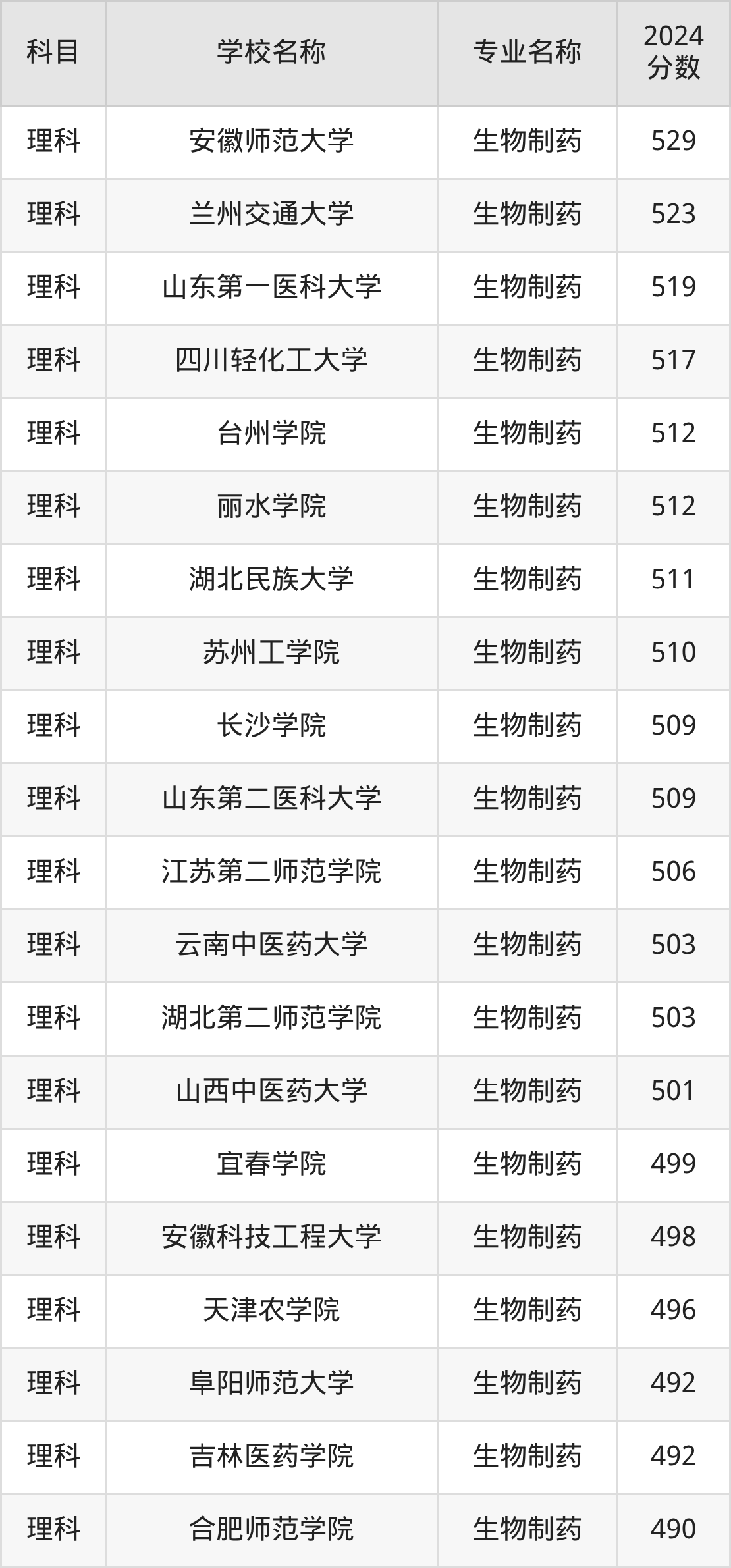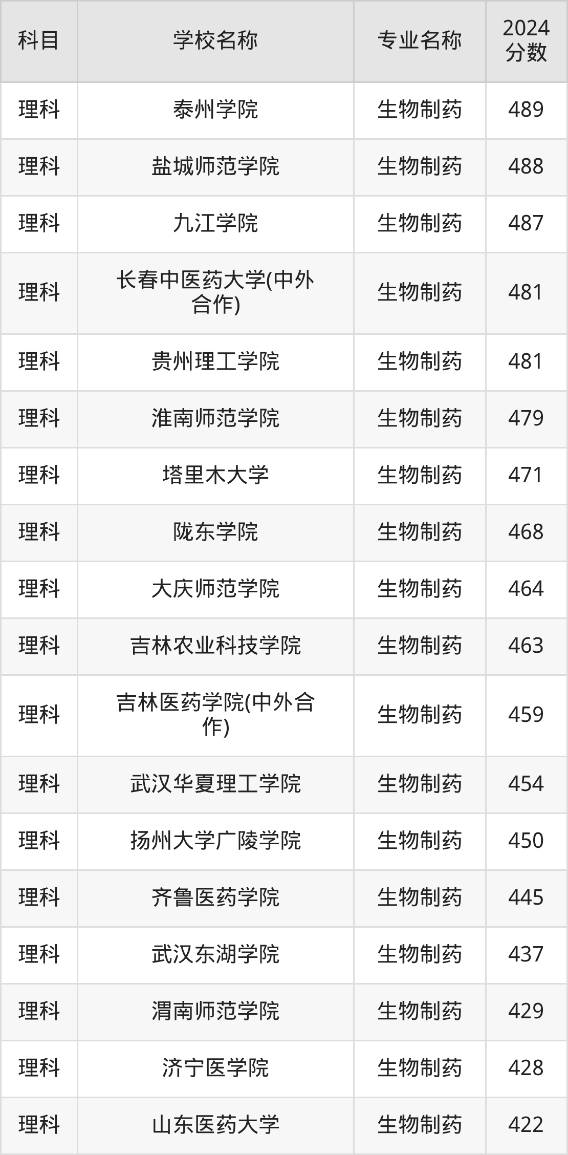 | 豫北医学院 | 生物制药 | 448 |