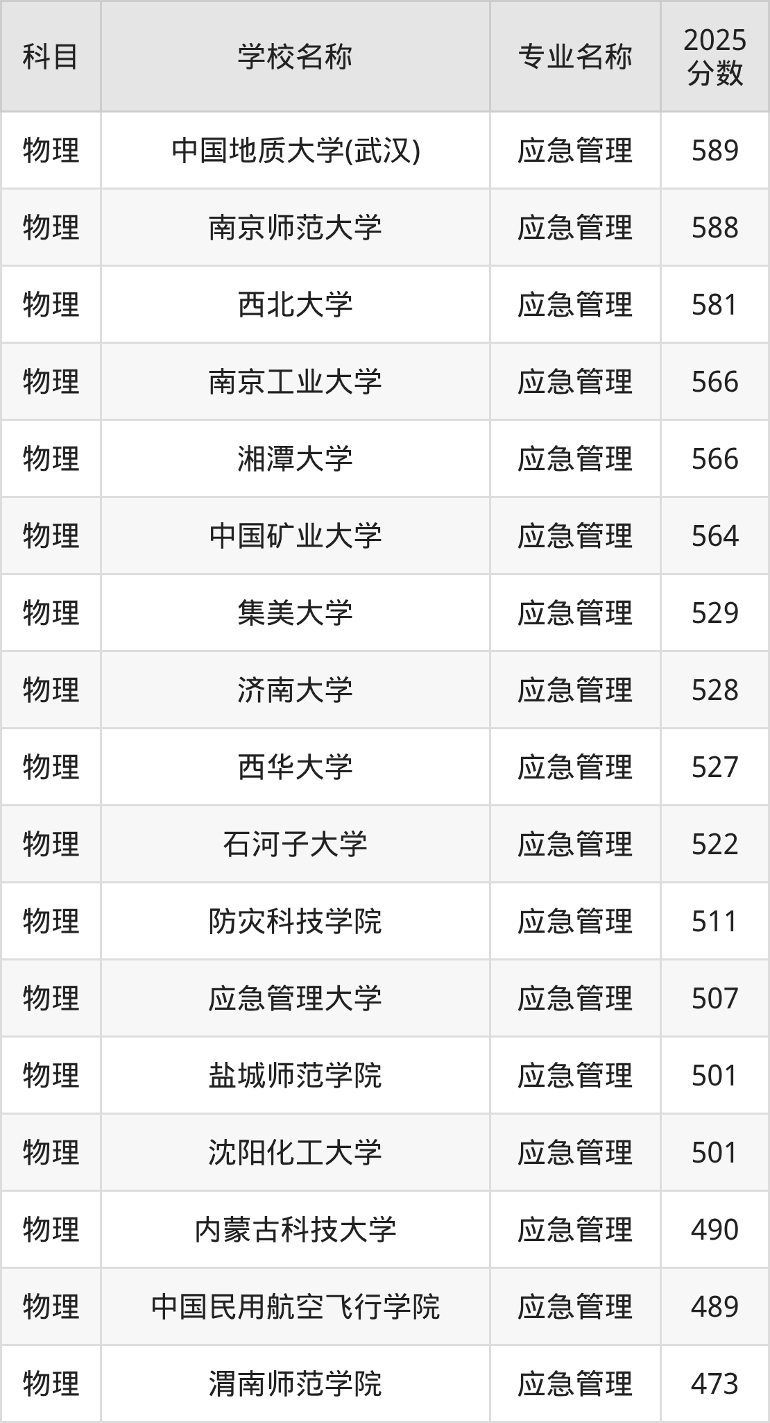 | 山西财经大学 | 应急管理 | 486 |