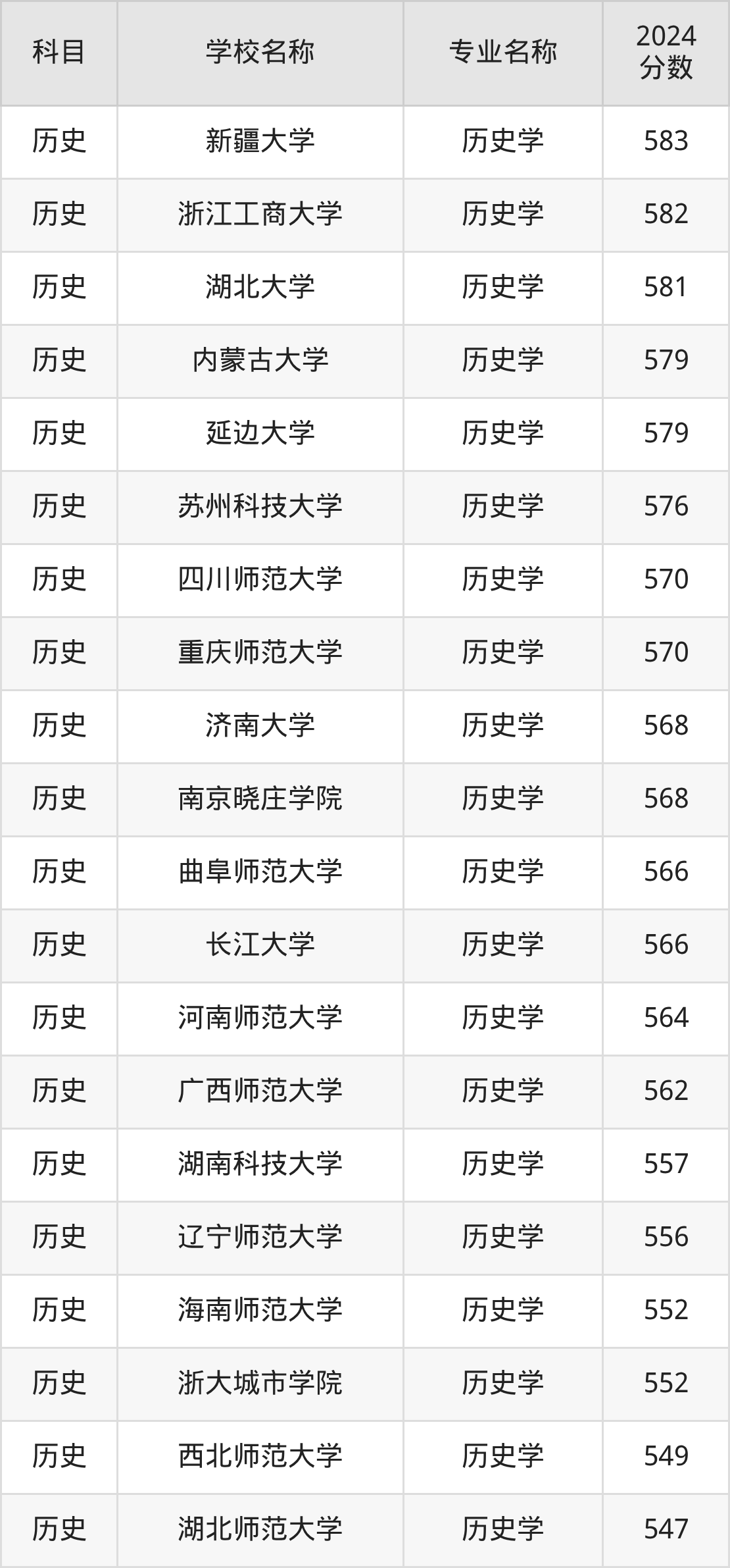 | 安徽师范大学 | 历史学(师范) | 571 |