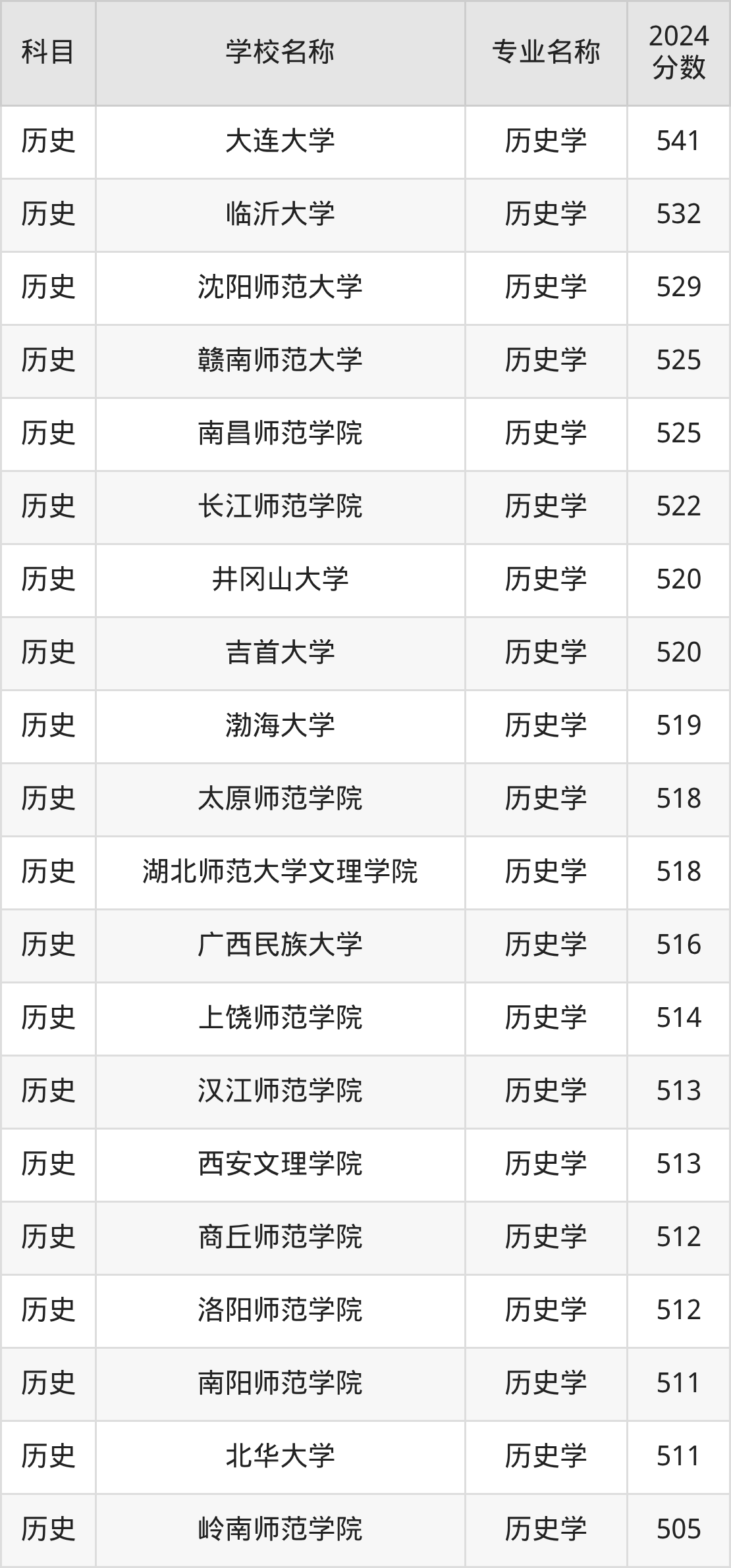 | 安庆师范大学 | 历史学(师范) | 537 |