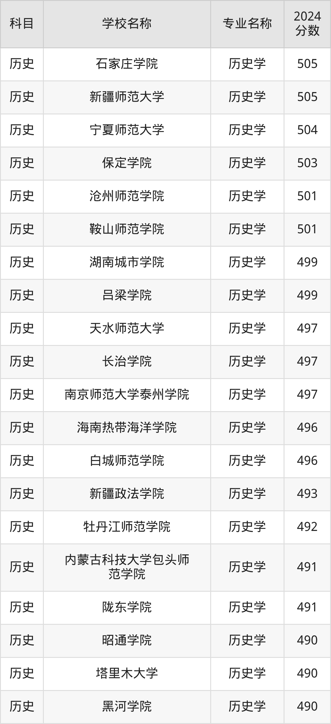 | 淮北师范大学 | 历史学(师范) | 528 |