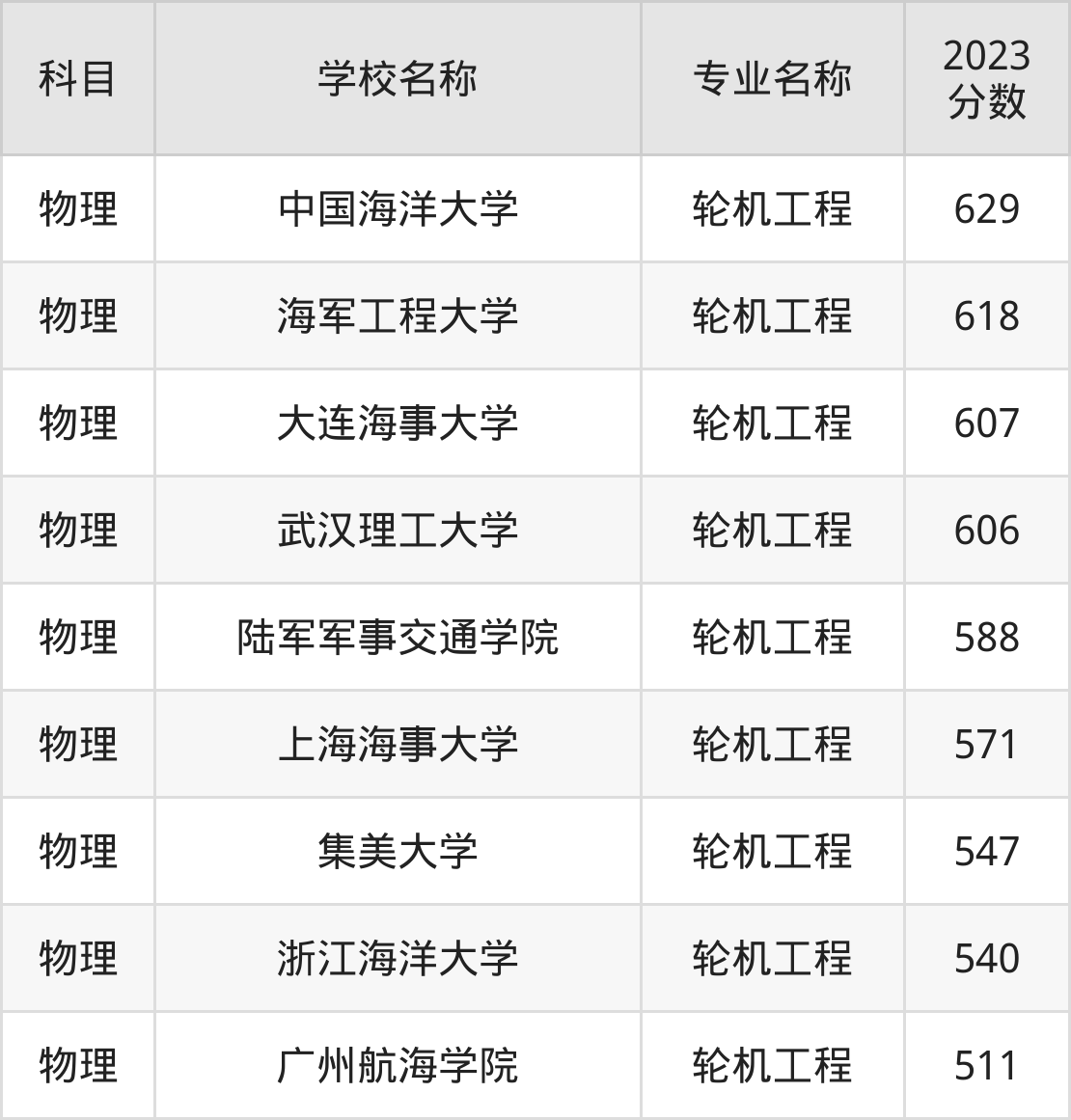 | 江苏科技大学 | 轮机工程 | 541 |