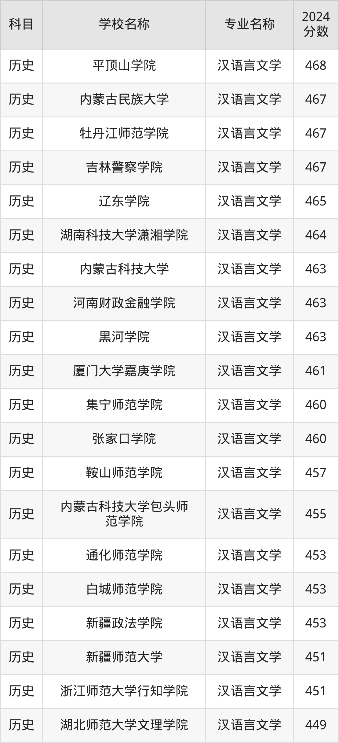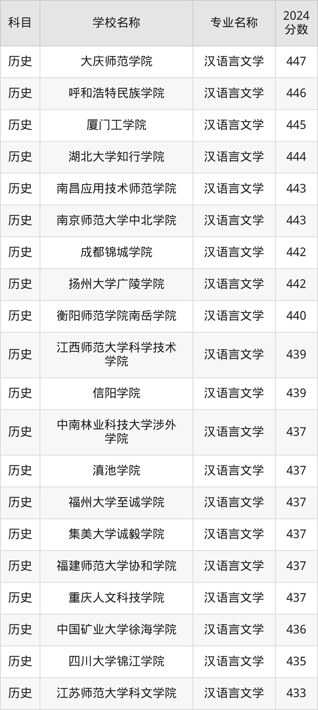 | 南宁师范大学师园学院 | 汉语言文学(师 范类) | 444 |