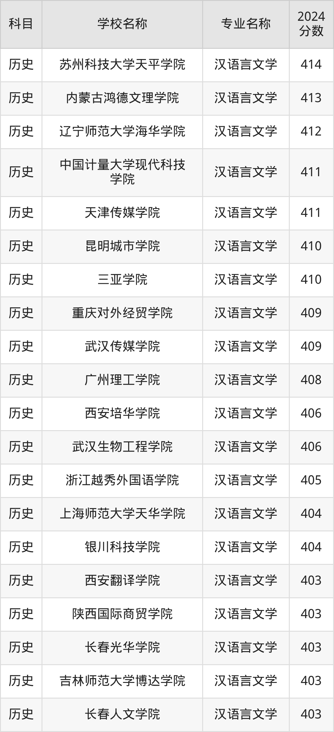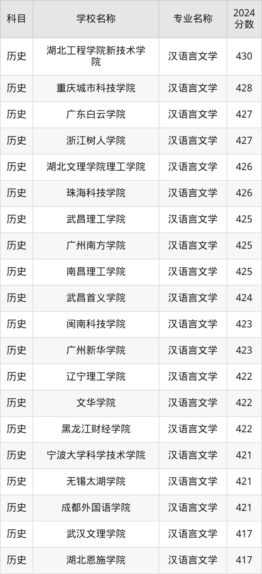 | 北海艺术设计学院 | 汉语言文学 | 418 |