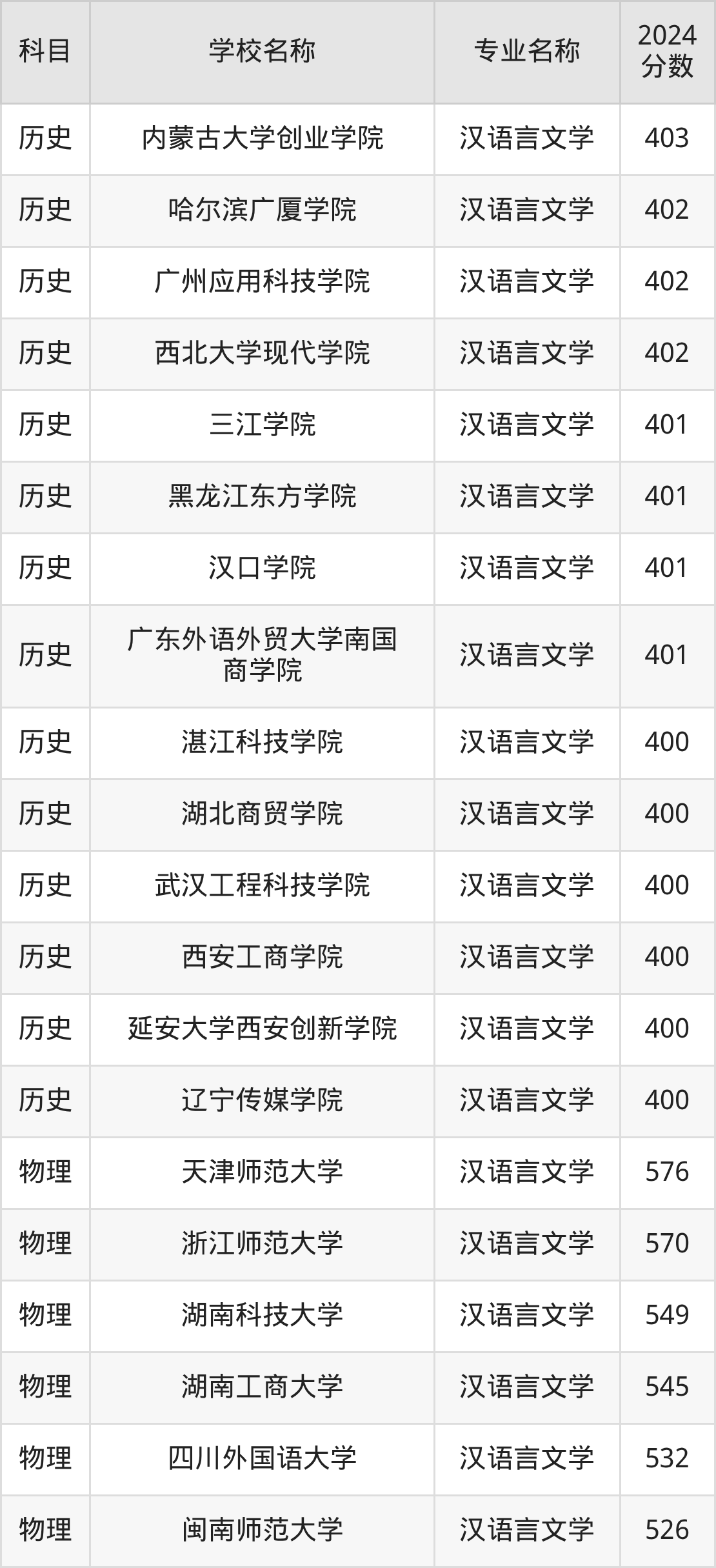 | 广西外国语学院 | 汉语言文学 | 400 |