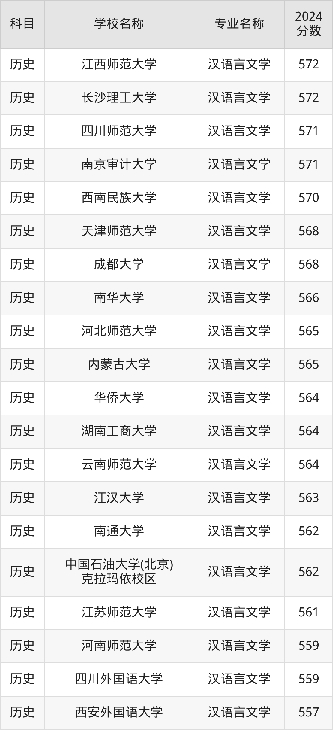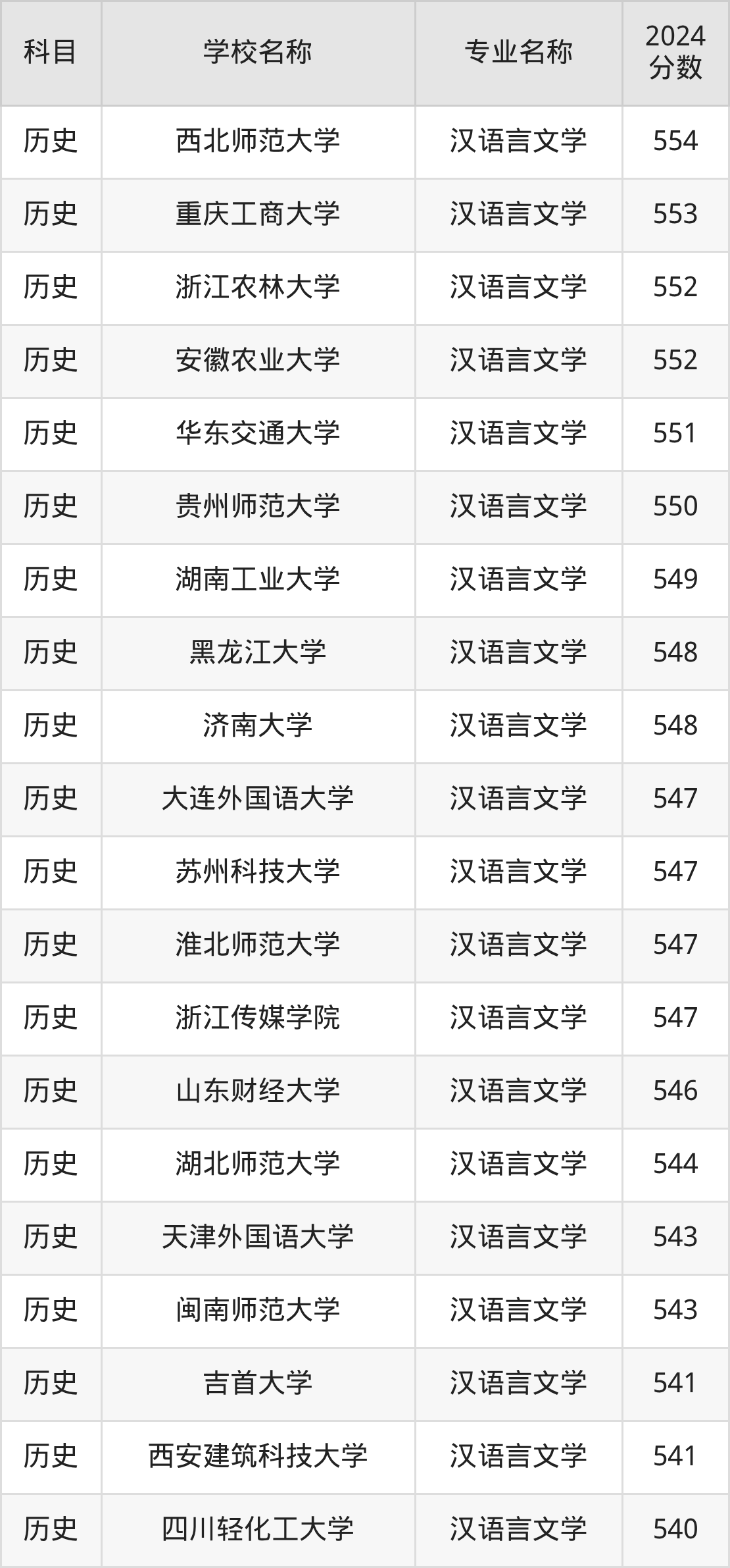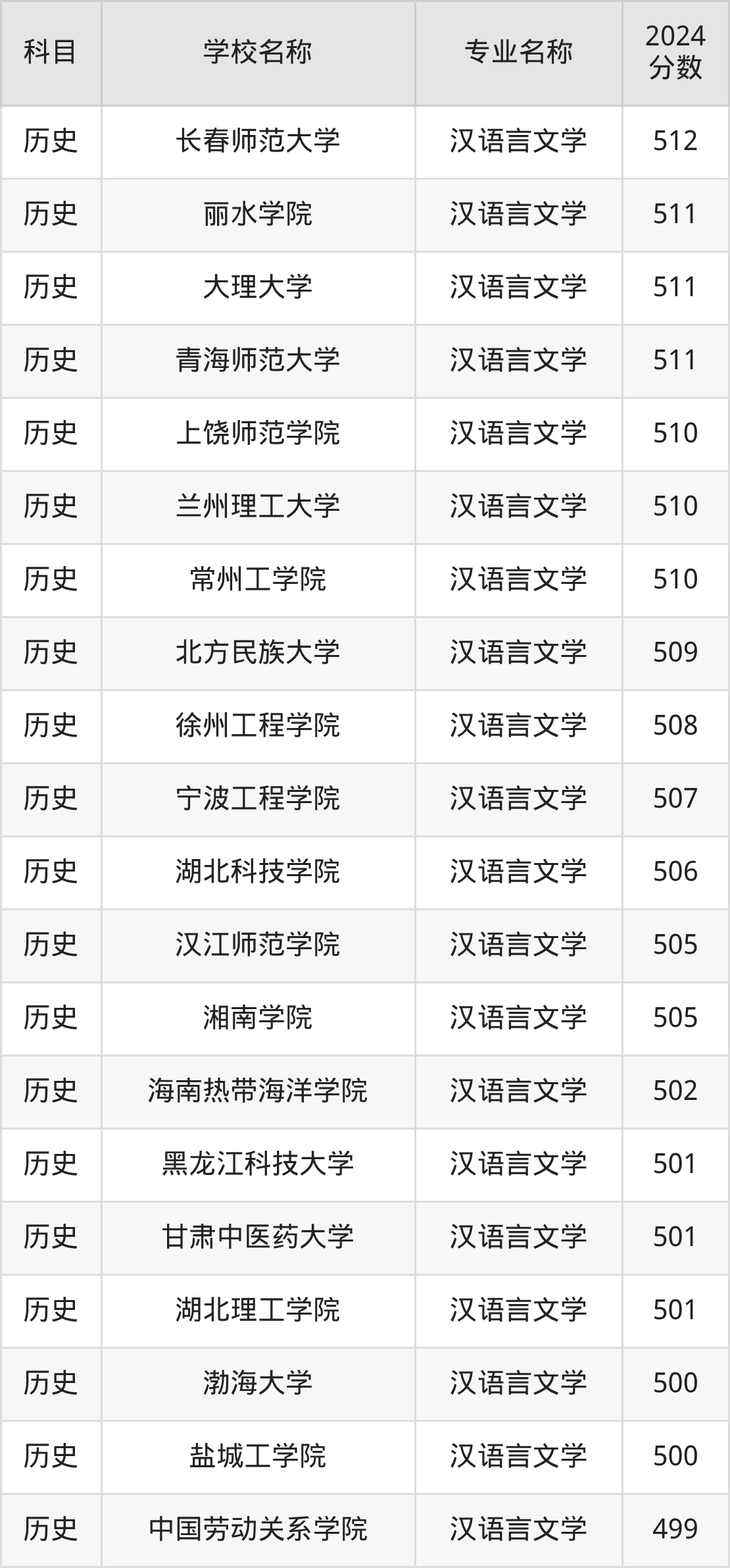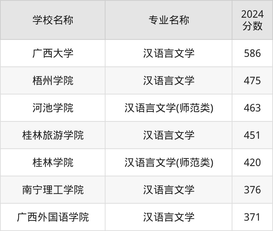 下文将为大家展示广西壮族自治区大学汉语言文学专业2024年在广西高考的最低录取分数线!