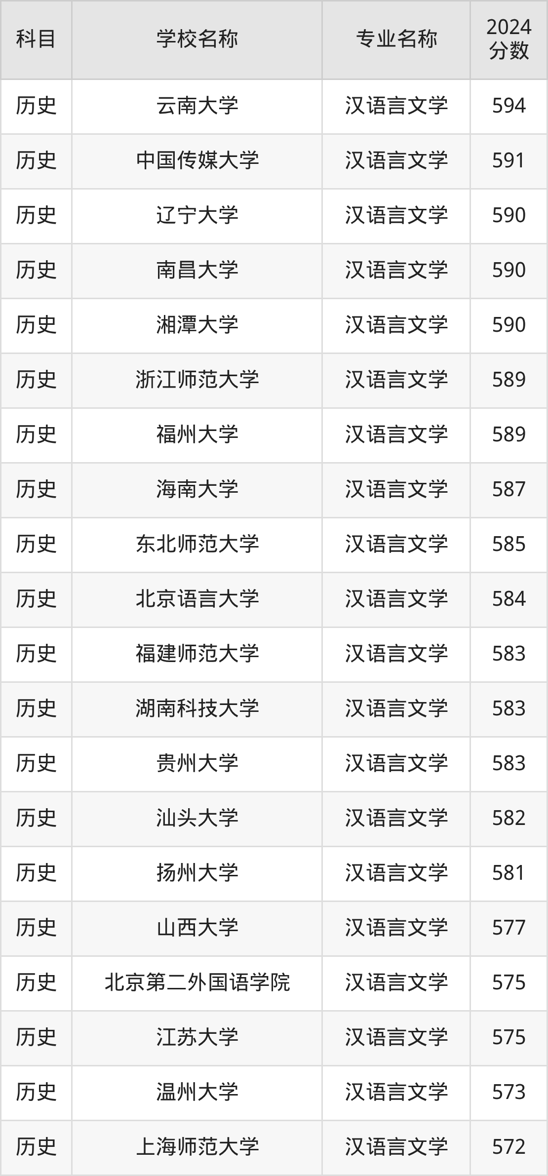 | 广西大学 | 汉语言文学(民 族班) | 590 |