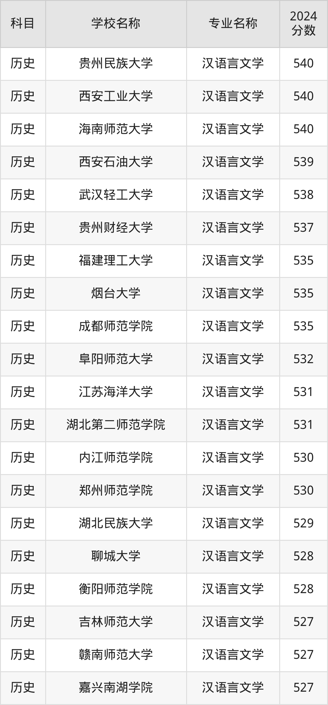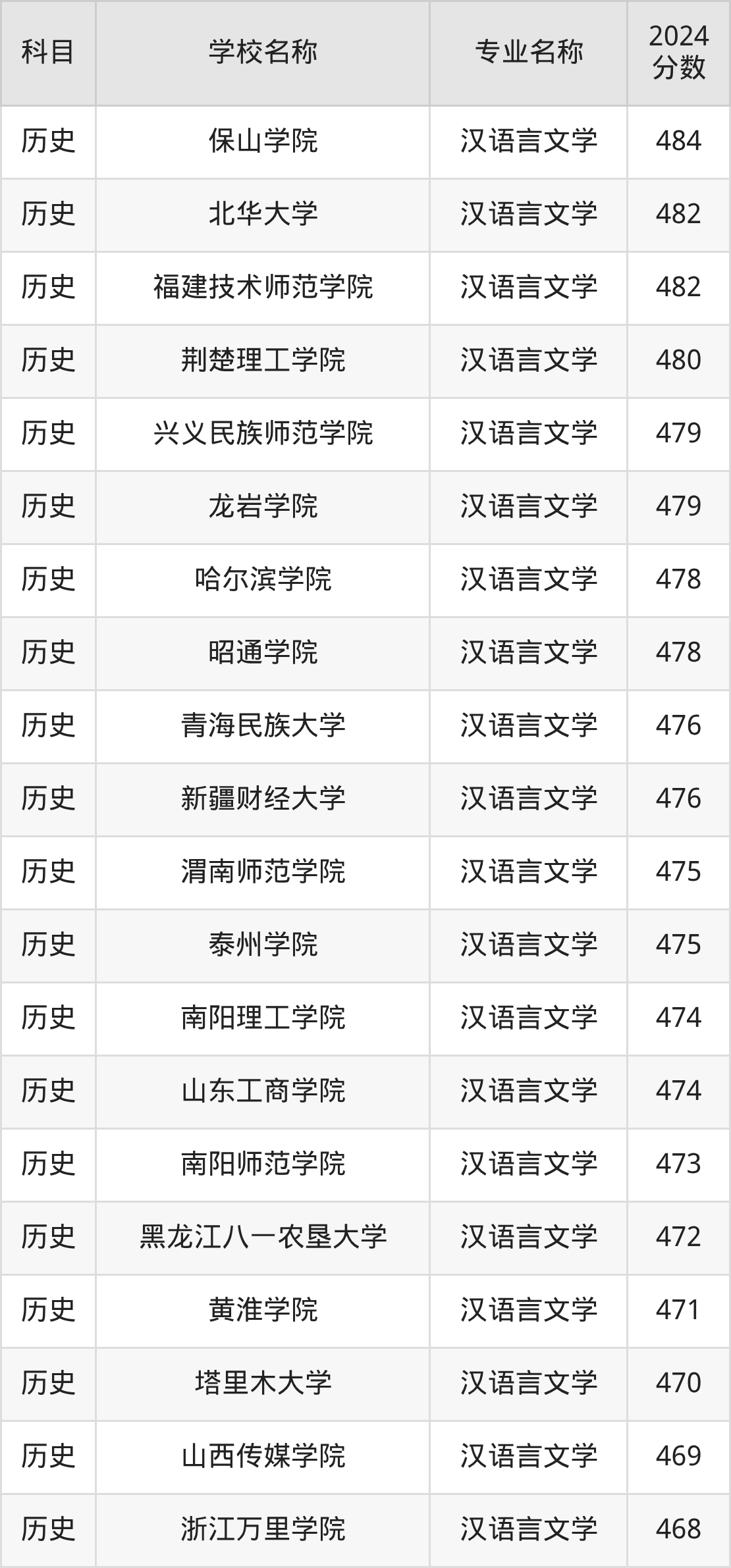 | 桂林旅游学院 | 汉语言文学 | 474 |