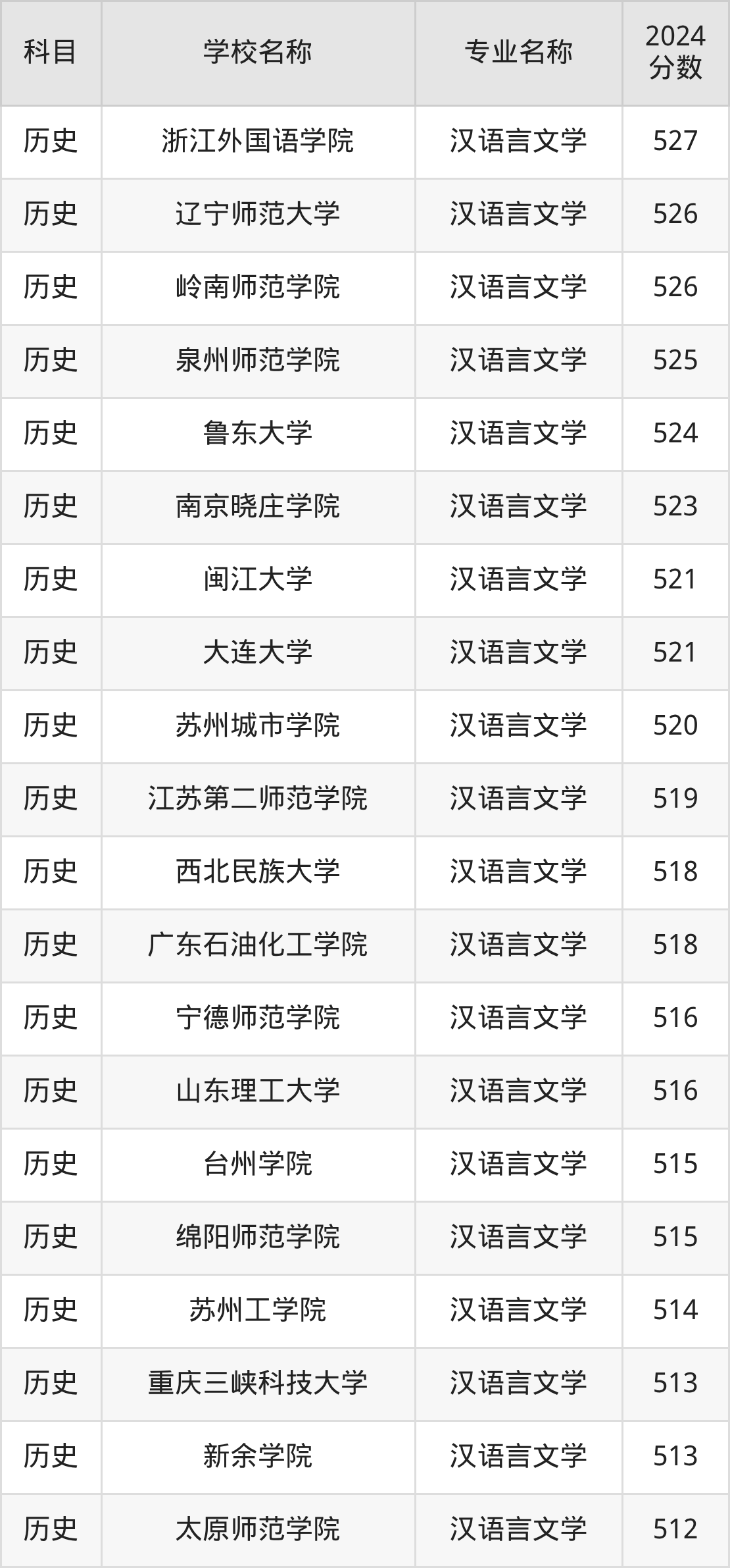 | 玉林师范学院 | 汉语言文学(师 范类) | 510 |