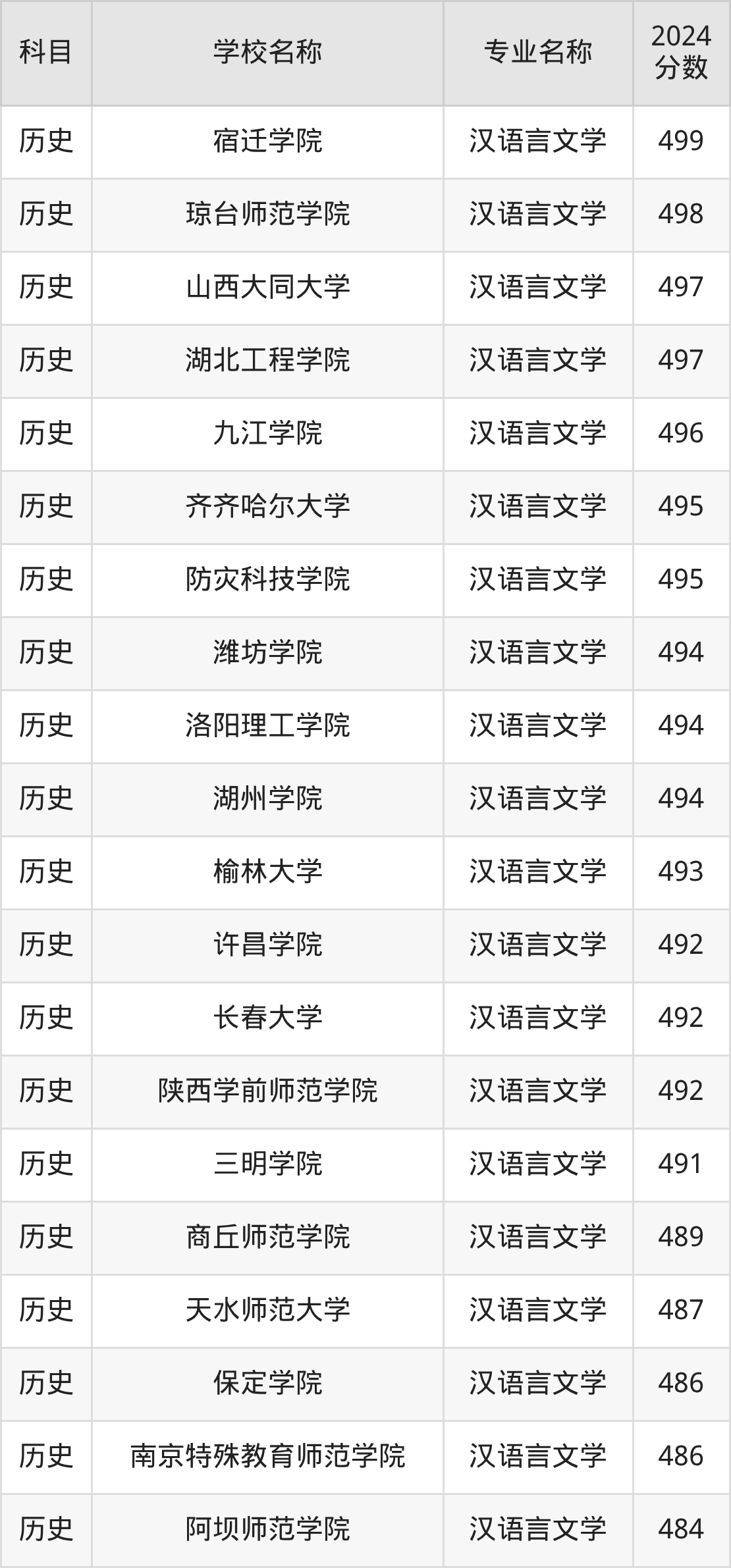 | 北部湾大学 | 汉语言文学(国 家专项计划)( 师范类) | 487 |