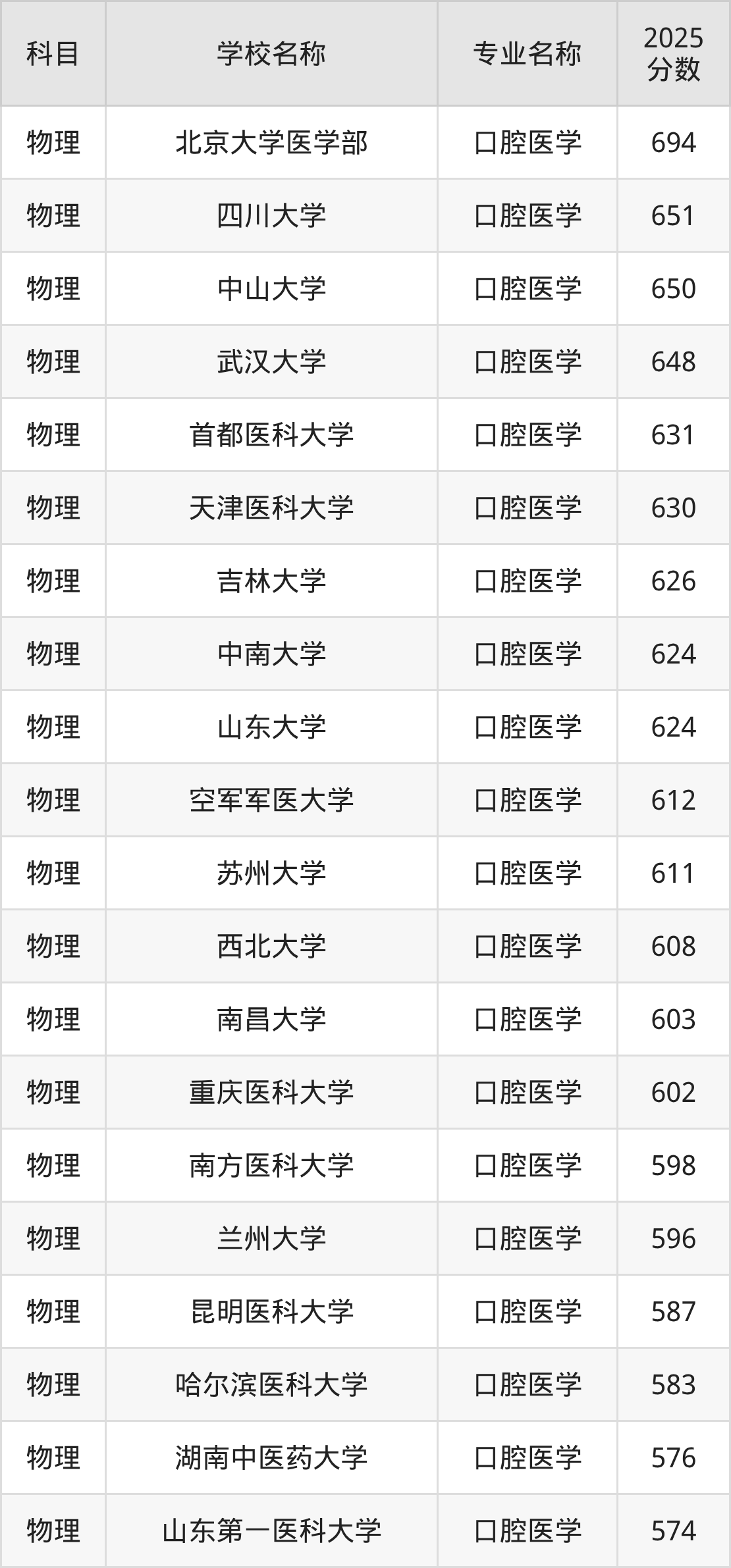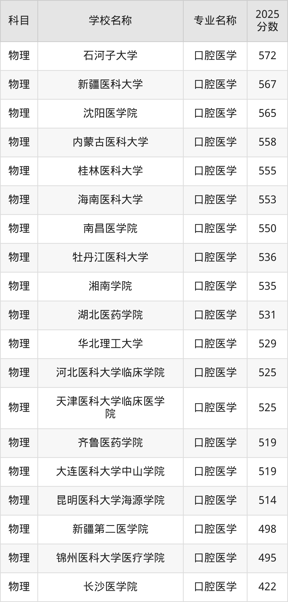 山西高考物理组:口腔医学专业的最低分是527分~575分
