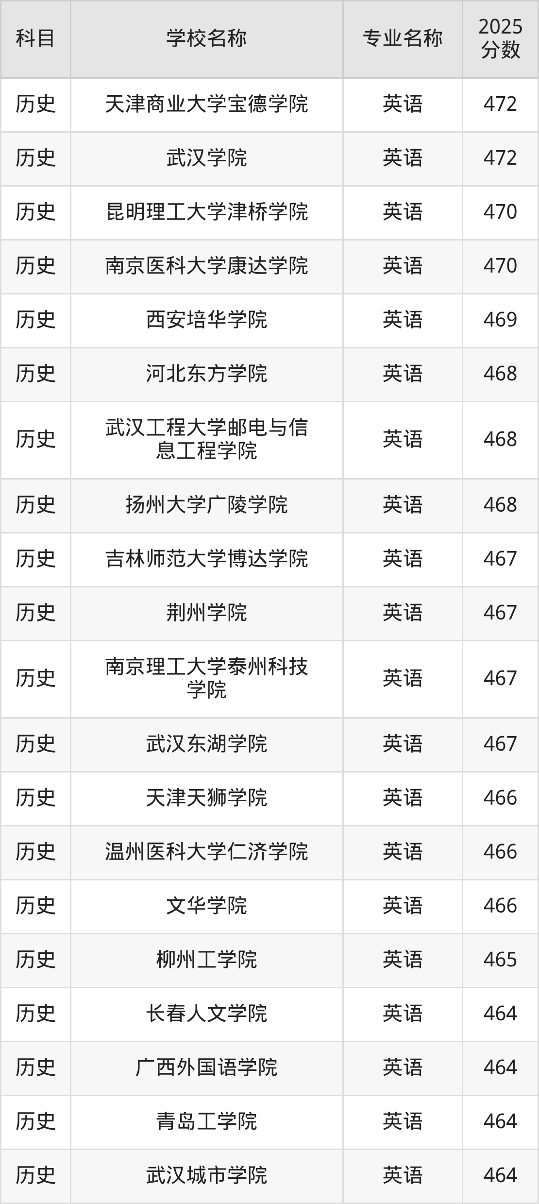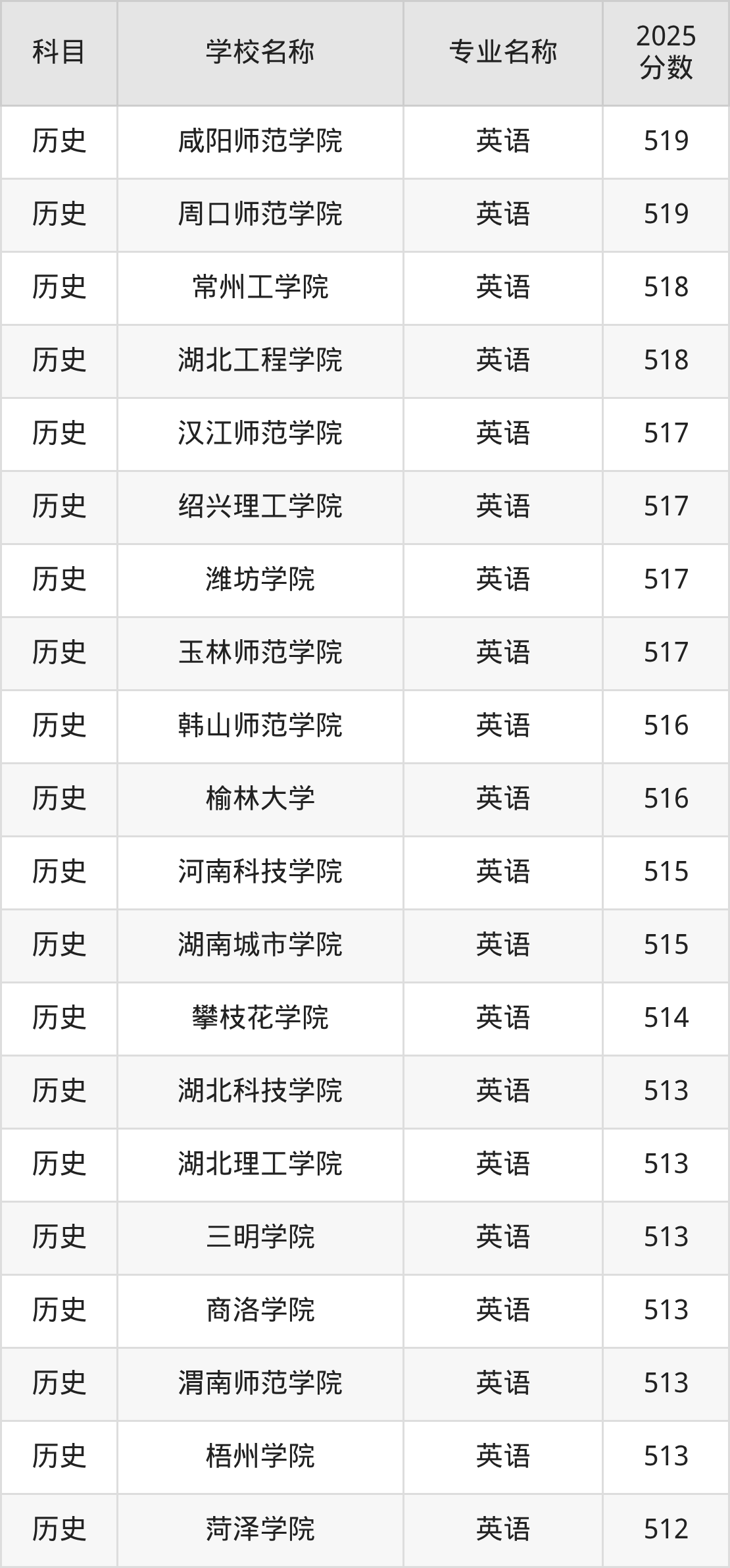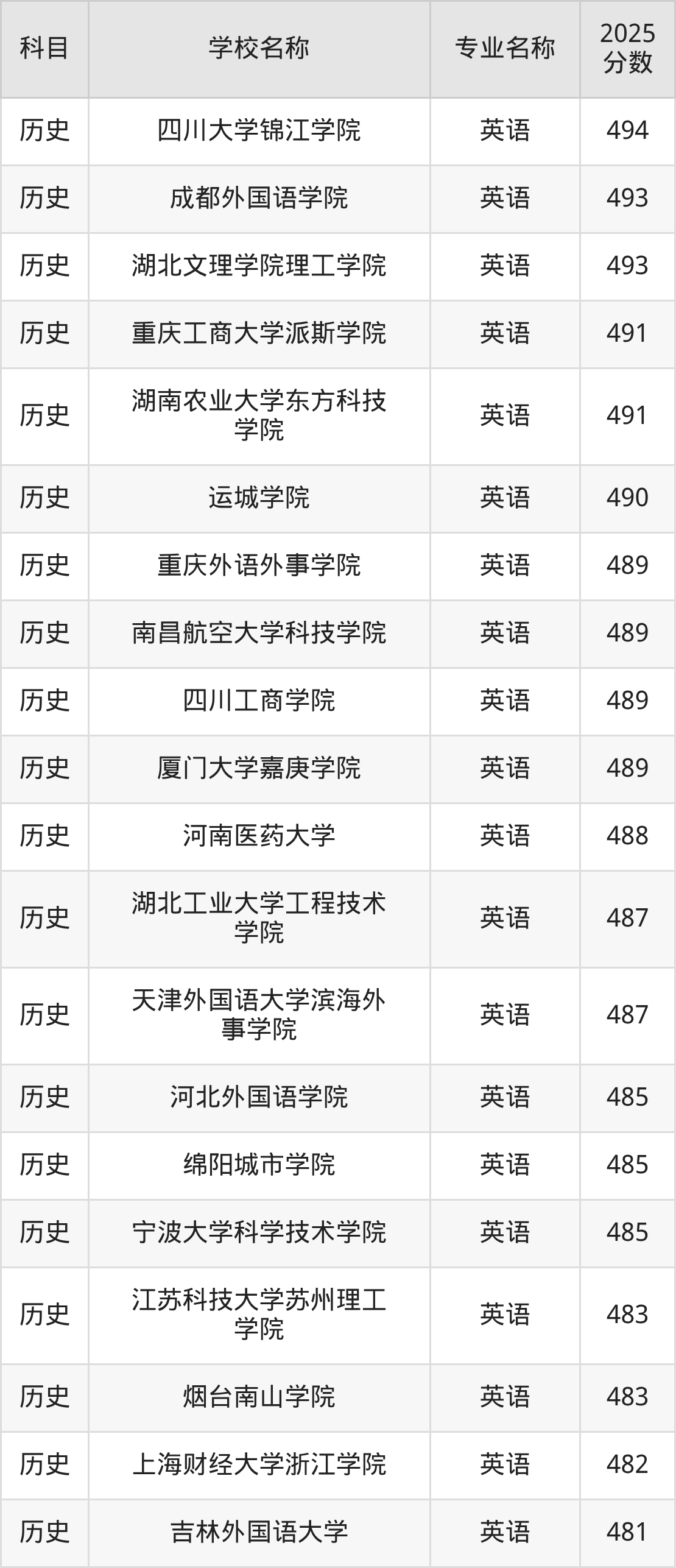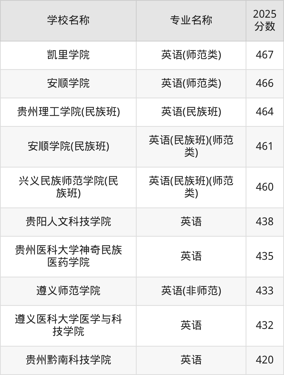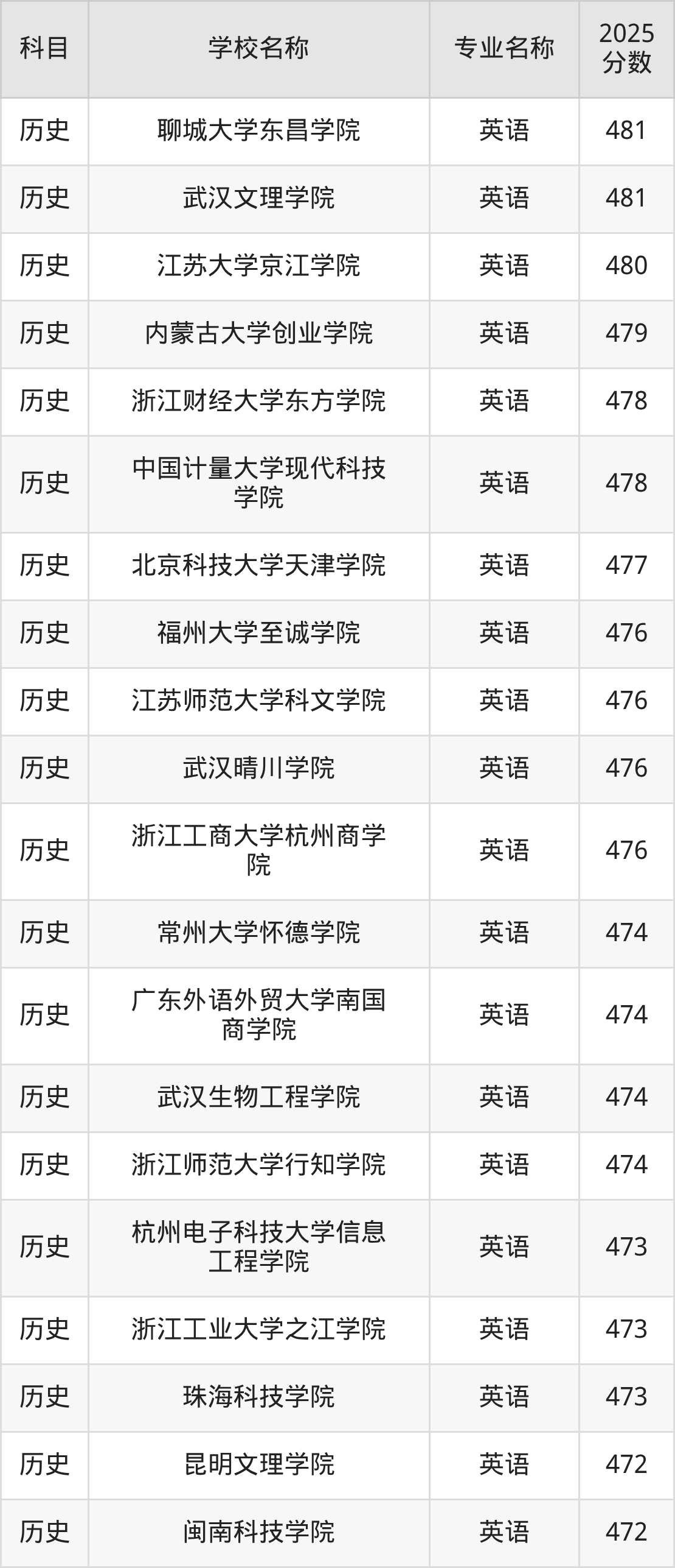 | 贵阳人文科技学院 | 英语 | 481 |