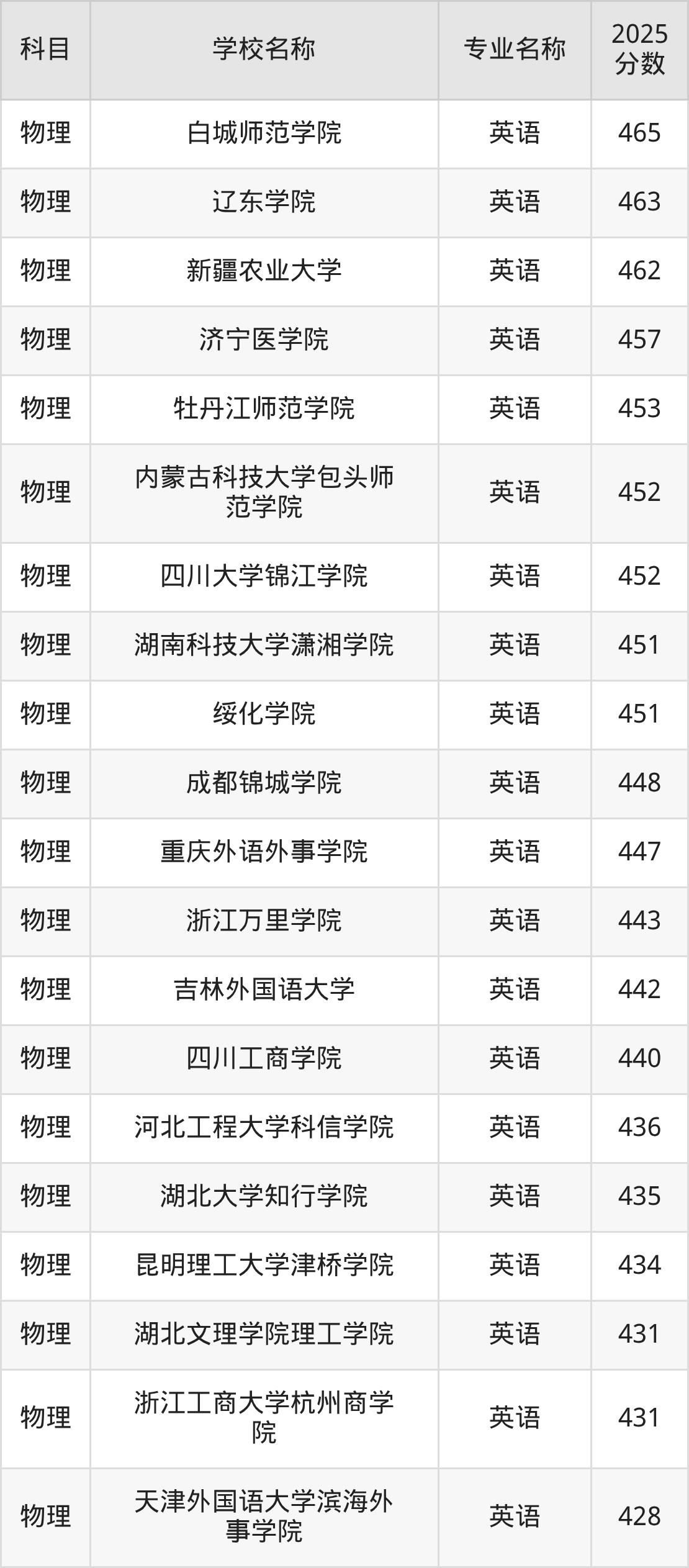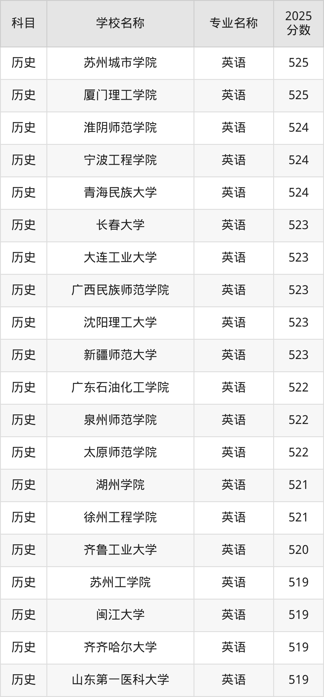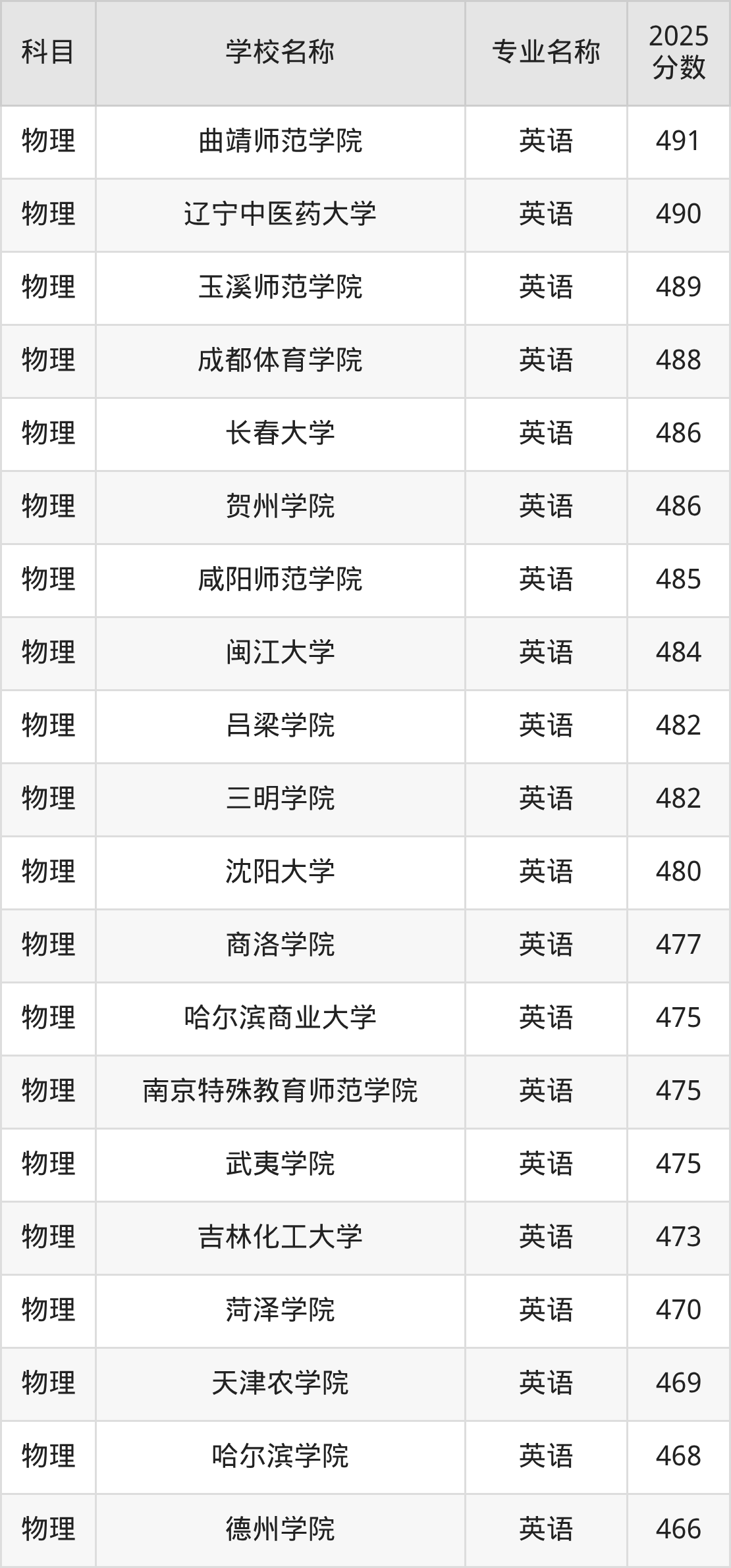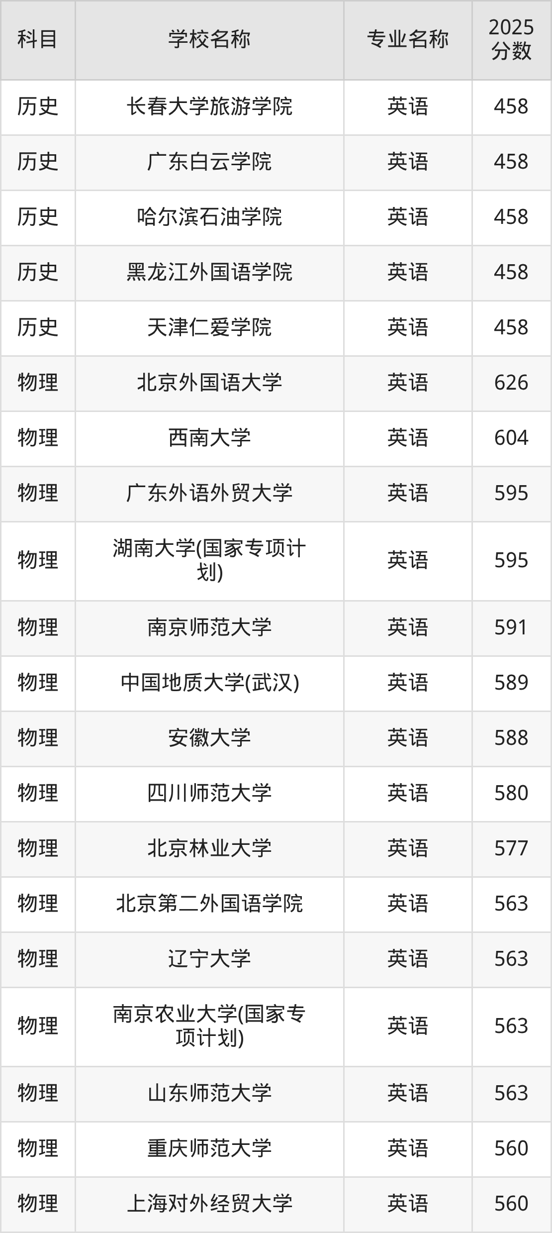 | 学校名称 | 专业名称 | 2025 分数 |