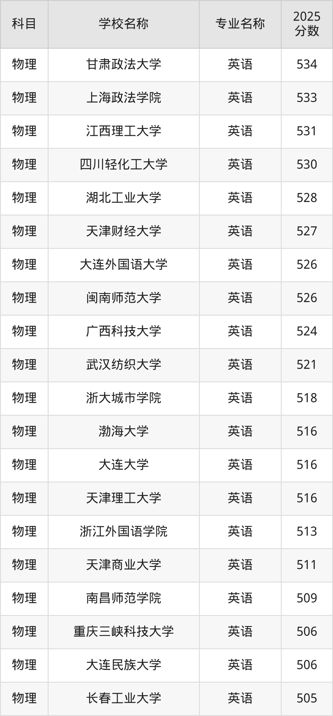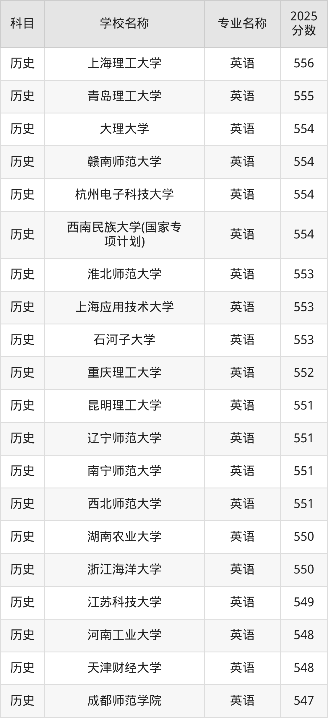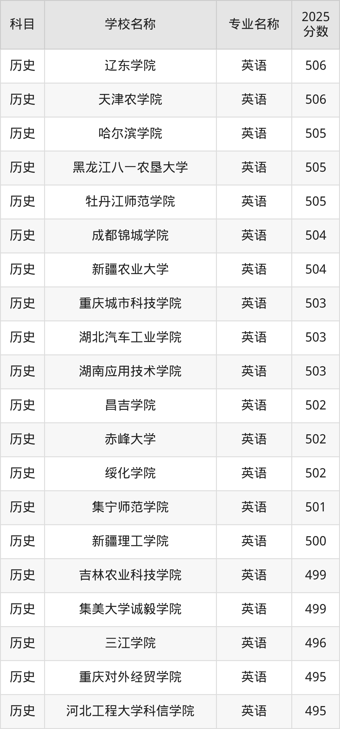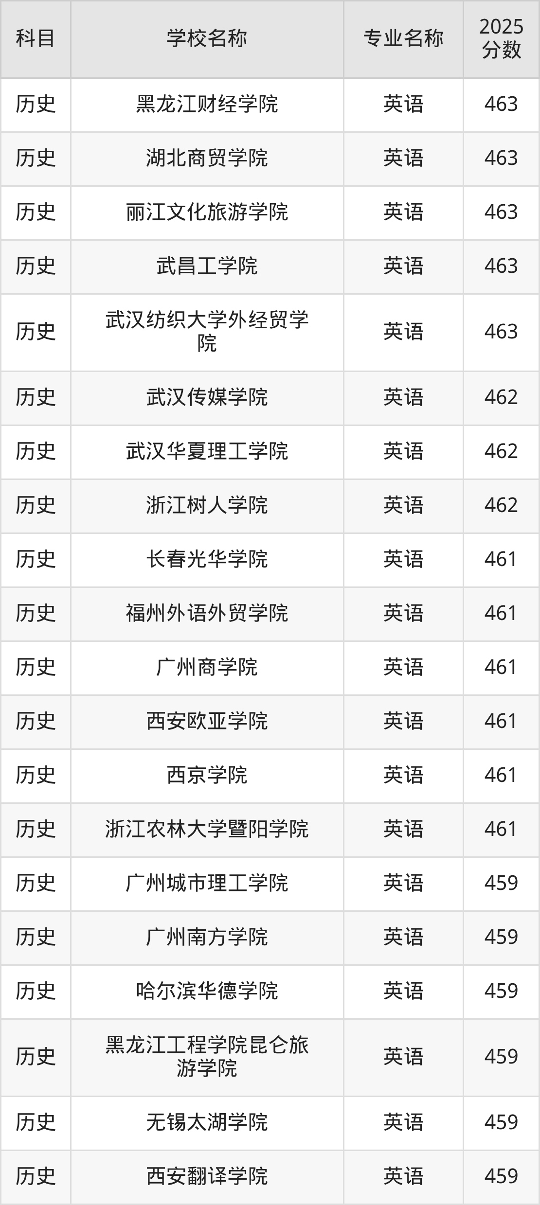 | 学校名称 | 专业名称 | 2025 分数 |