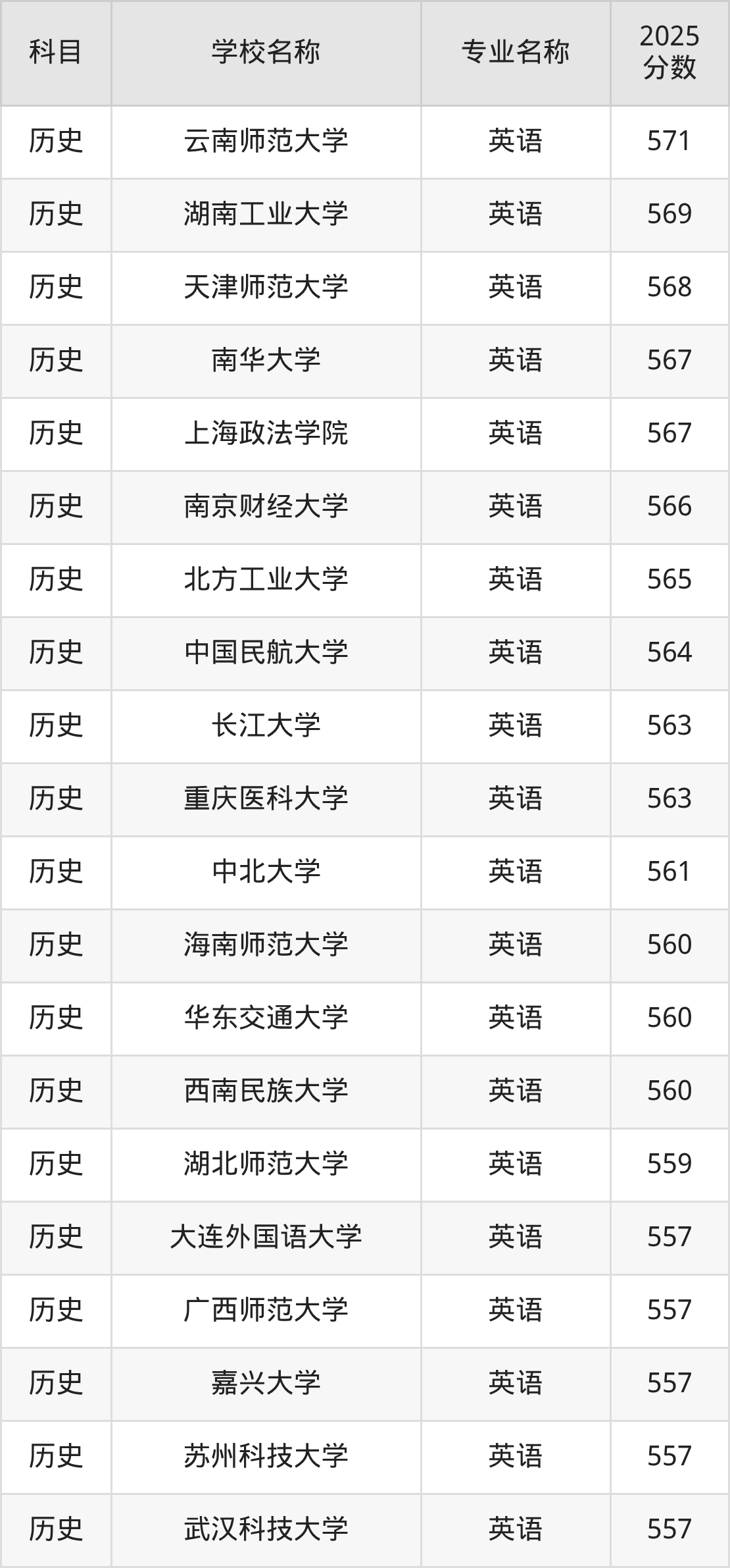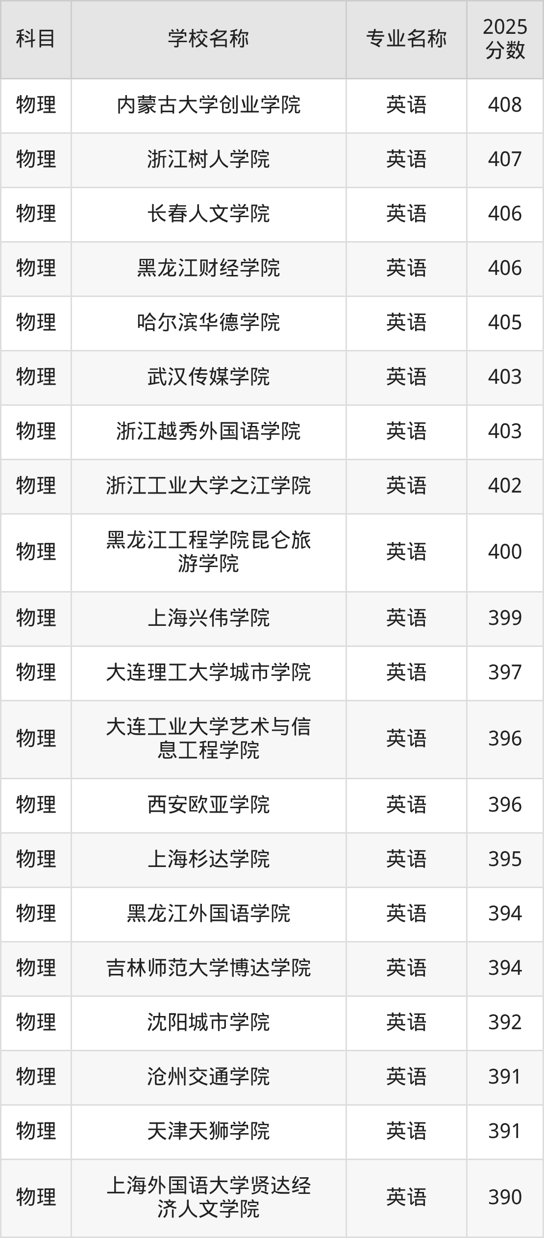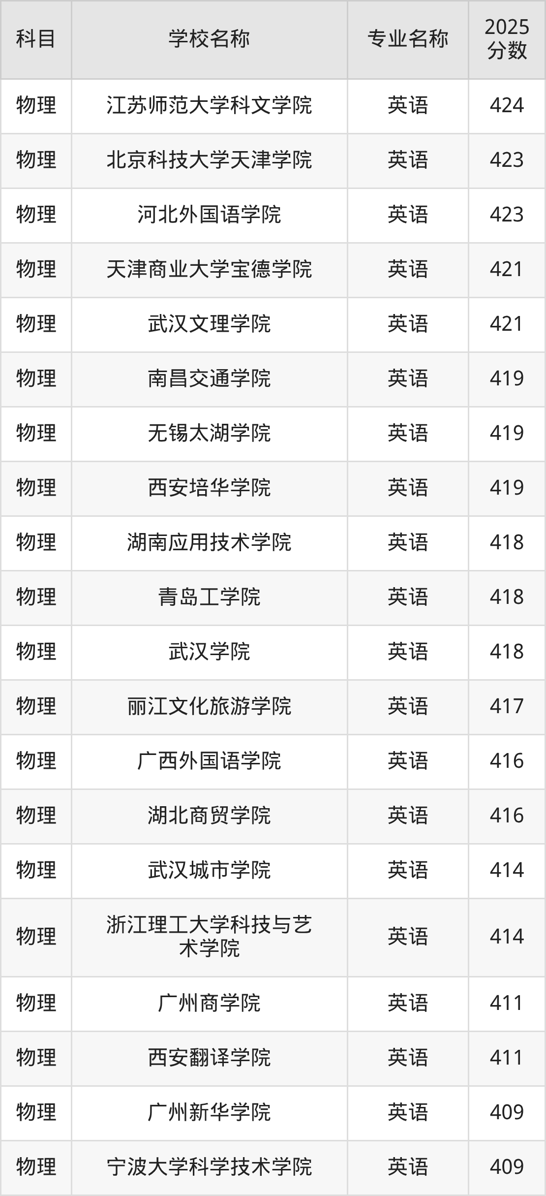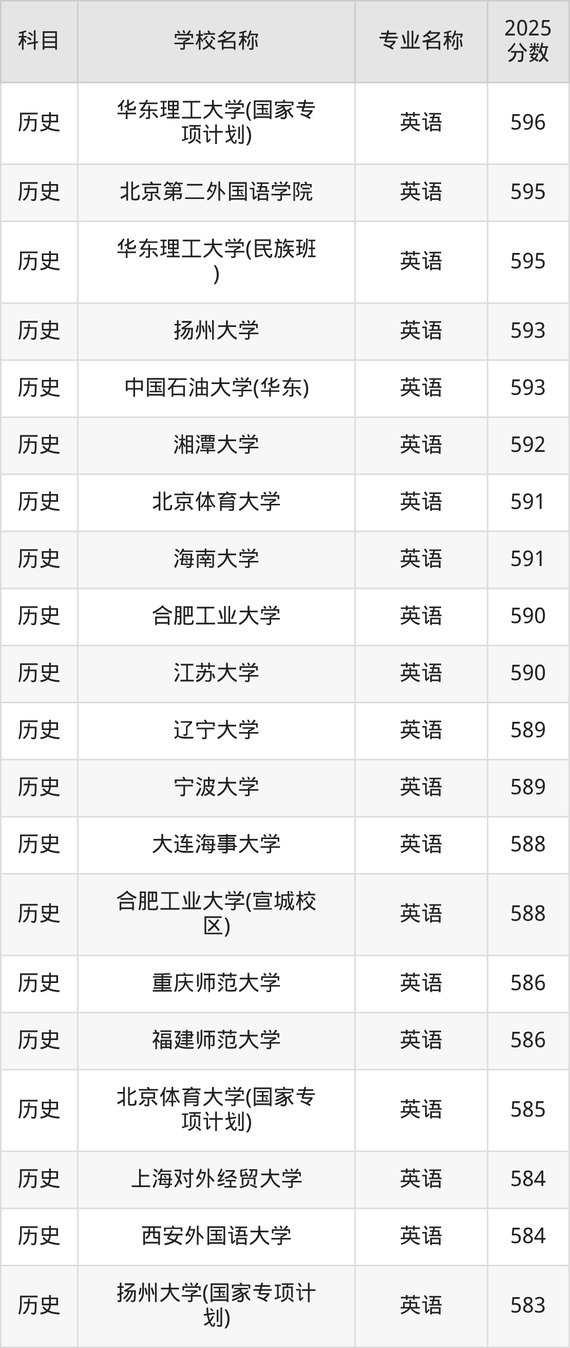 | 学校名称 | 专业名称 | 2025 分数 |