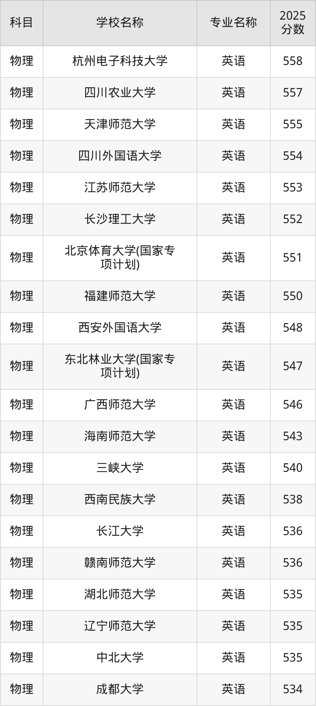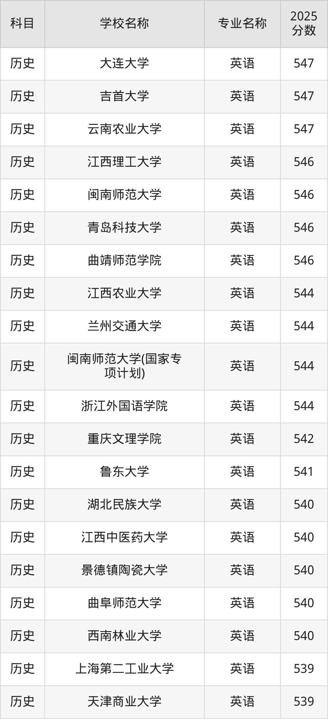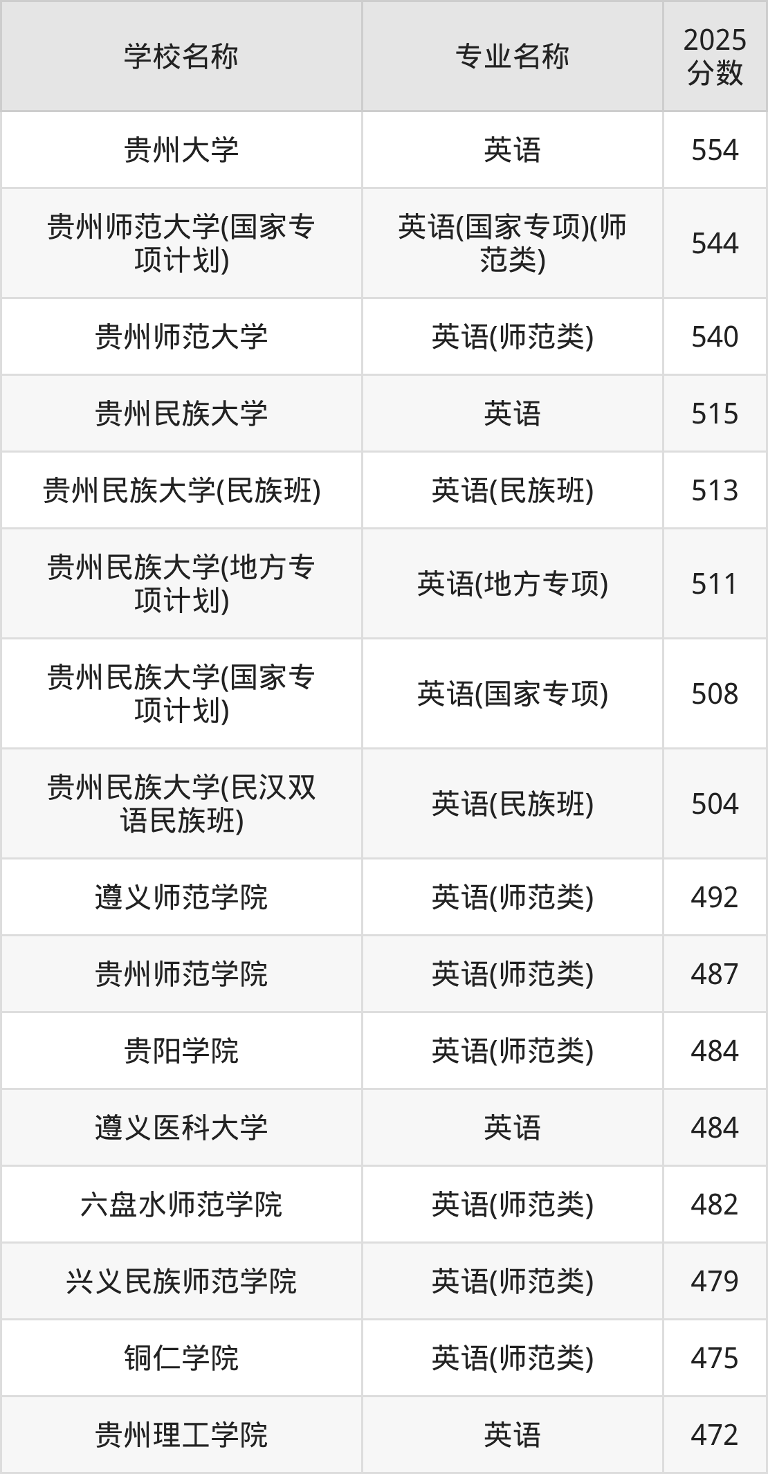 | 贵州民族大学(地方专 项计划) | 英语(地方专项) | 549 |