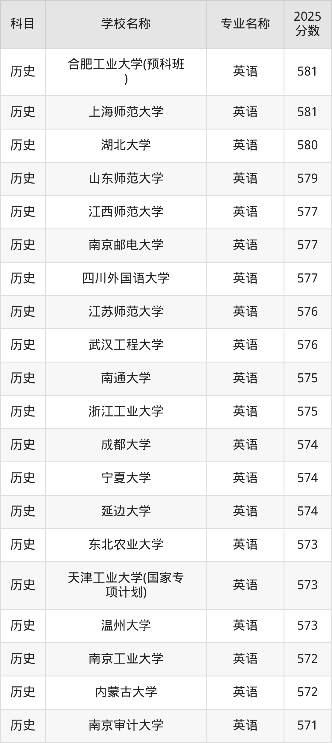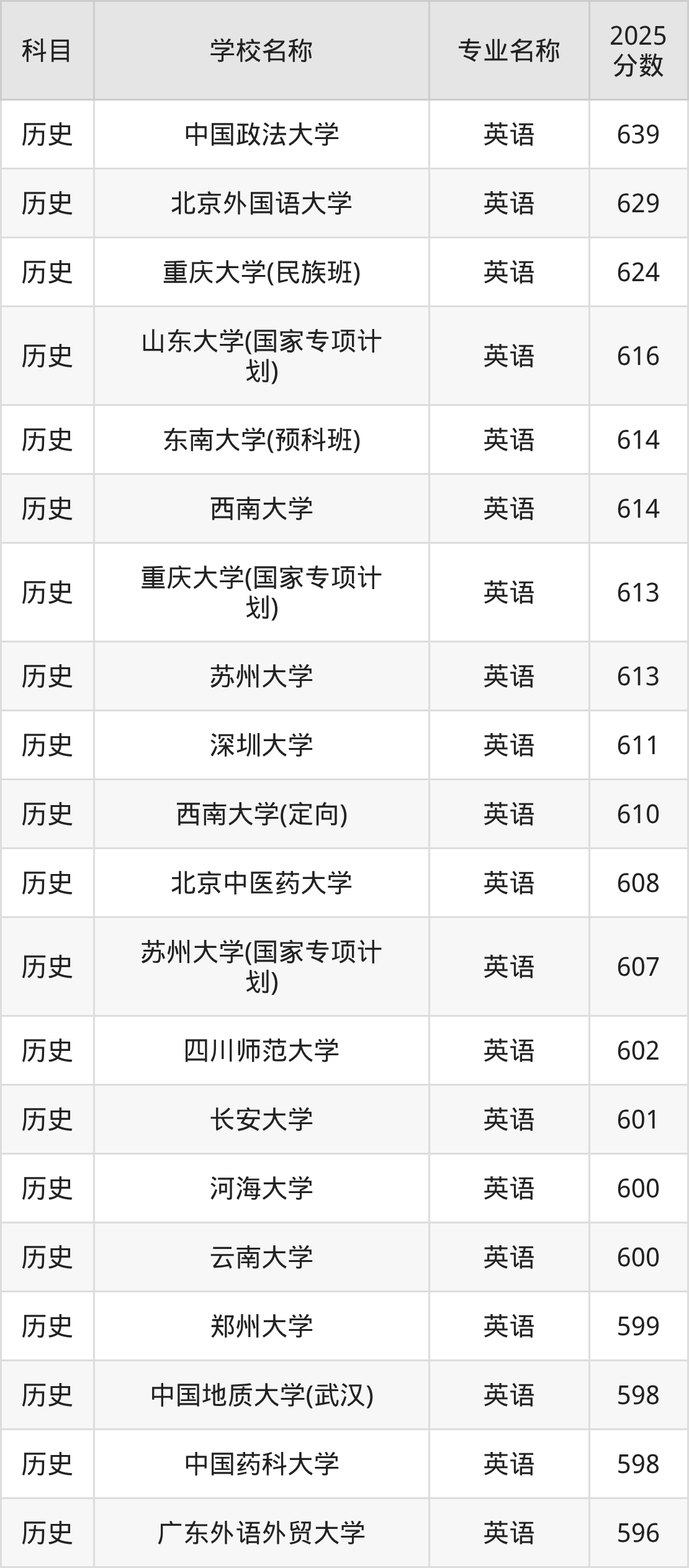 | 贵州大学(地方专项计 划) | 英语(地方专项) | 575 |