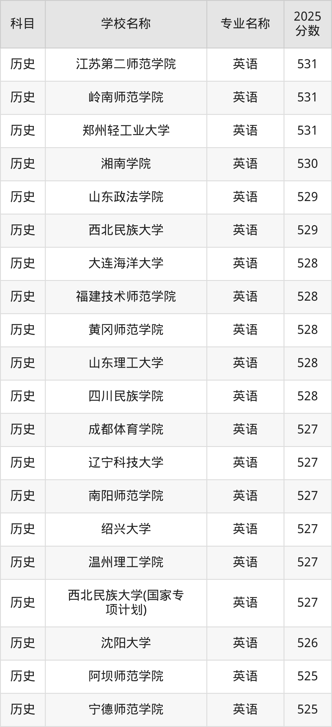 | 兴义民族师范学院 | 英语(师范类) | 513 |