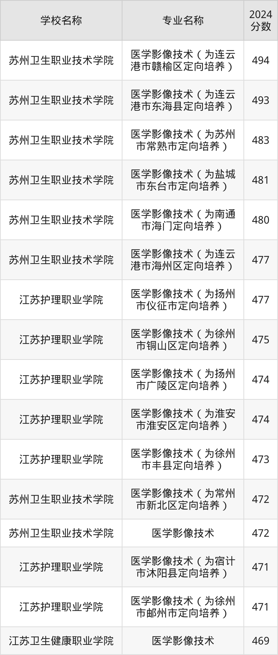 | 江苏护理职业学院 | 医学影像技术( 为淮安市淮安区 定向培养) | 468 |