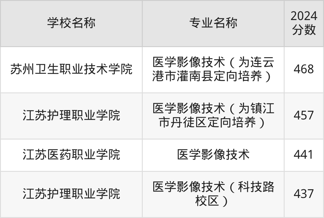 | 苏州卫生职业技术学院 | 医学影像技术 | 461 |