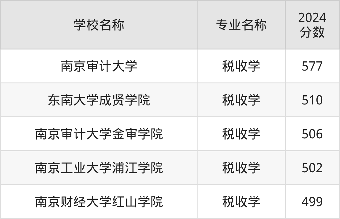 | 南京财经大学红山学院 | 税收学 | 502 |