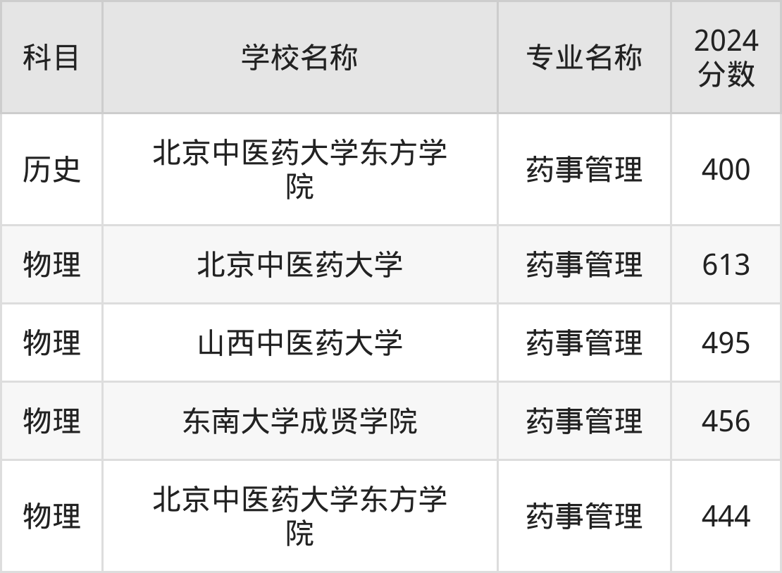 通过上文大家可以知晓,在辽宁省内招药事管理专业的院校数量较少,所以下文将为2025届高考生继续展示:省外大学的药事管理专业2024年在辽宁高考的录取情况,包含北京中医药大学东方学院、北京中医药大学、山西中医药大学、东南大学成贤学院。
