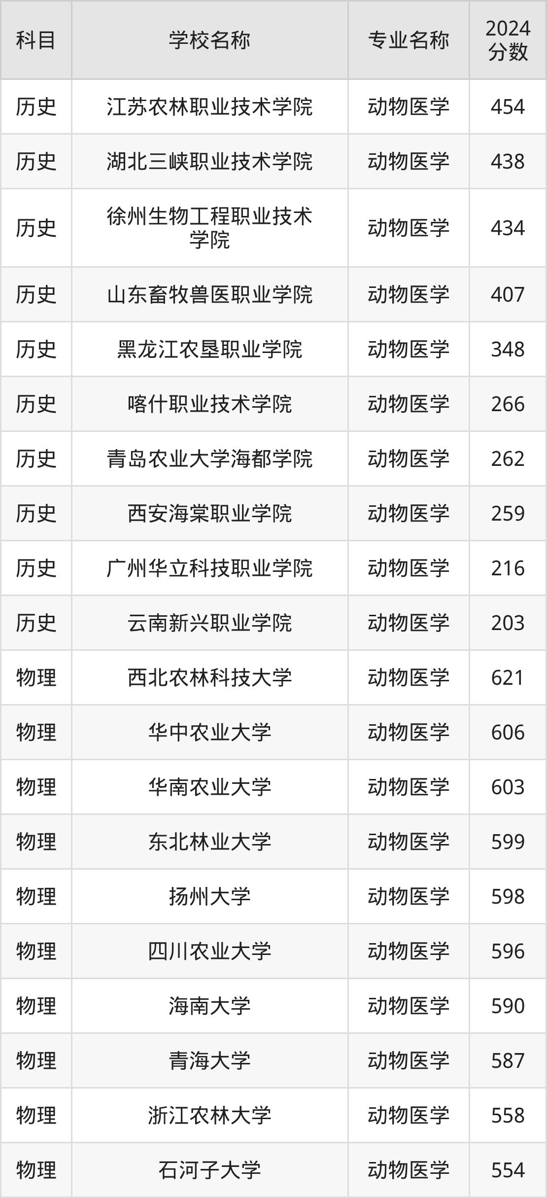 下文将为大家展示安徽省大学动物医学专业2024年在安徽高考的最低录取分数线!