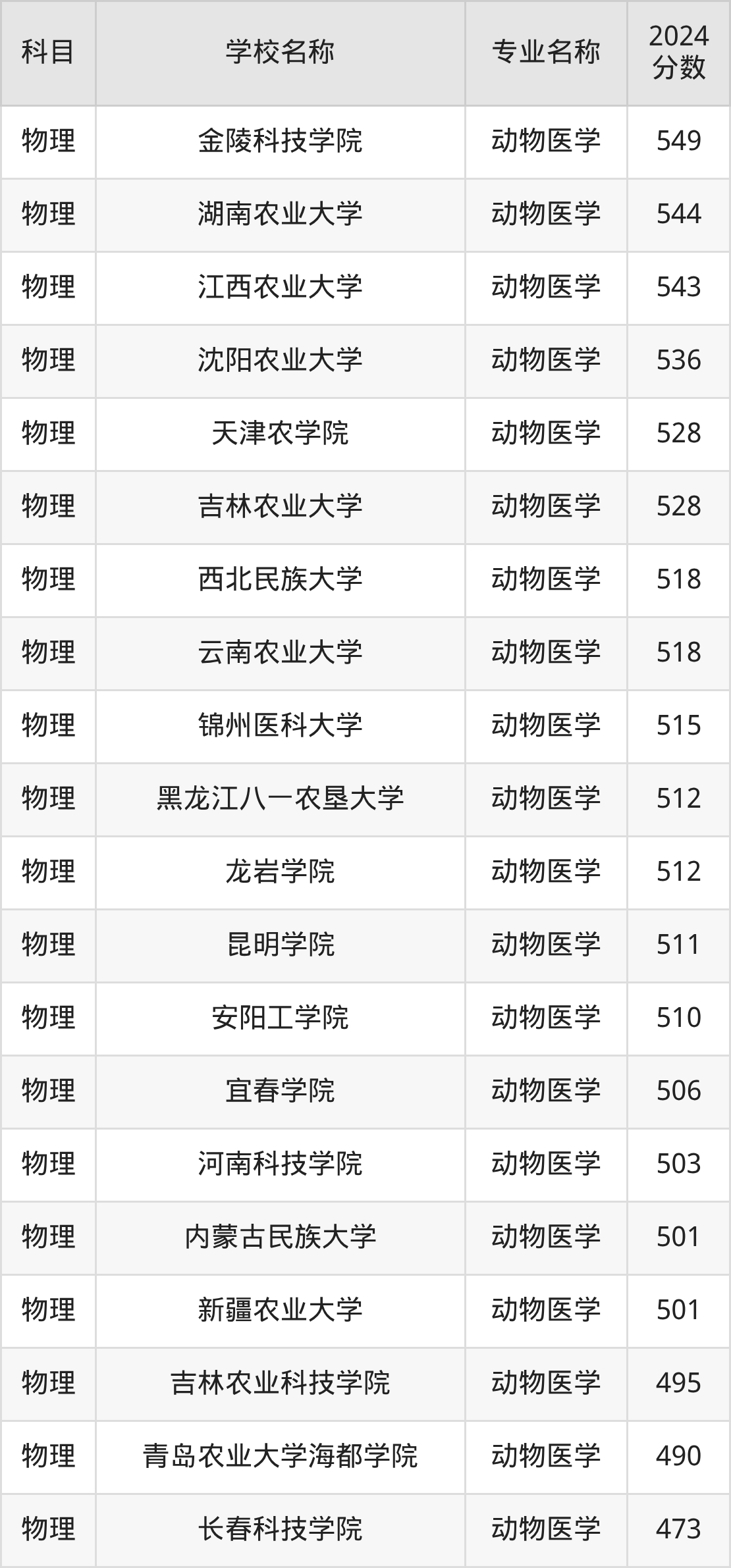 圆梦小编根据安徽2024年高考物理组专业分,将开设了动物医学专业且位于安徽省内的大学按照“录取分”从高到低排序,得出了以上榜单。