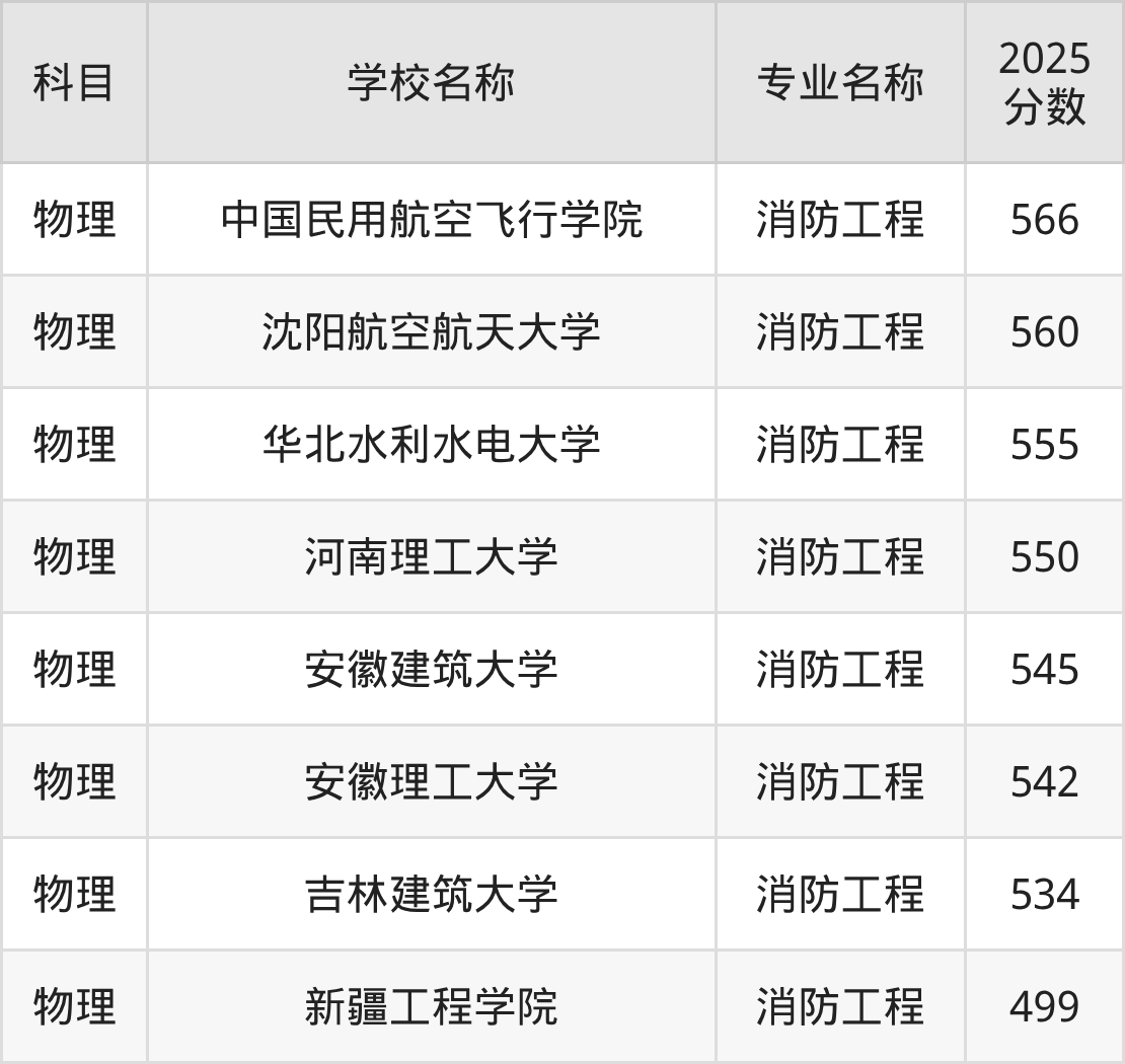 通过上文大家可以知晓,在河北省内招消防工程专业的院校数量较少,所以下文将为2026届高考生继续展示:省外大学的消防工程专业2025年在河北高考的录取情况,包含中国民用航空飞行学院、沈阳航空航天大学、华北水利水电大学、河南理工大学、安徽建筑大学。