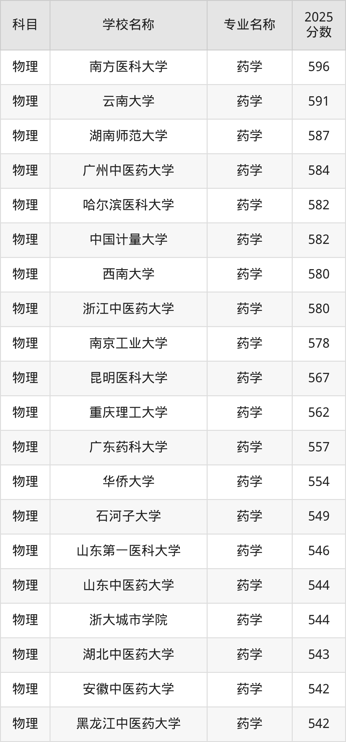 下文将为大家展示辽宁省大学药学专业2025年在辽宁高考的最低录取分数线!
