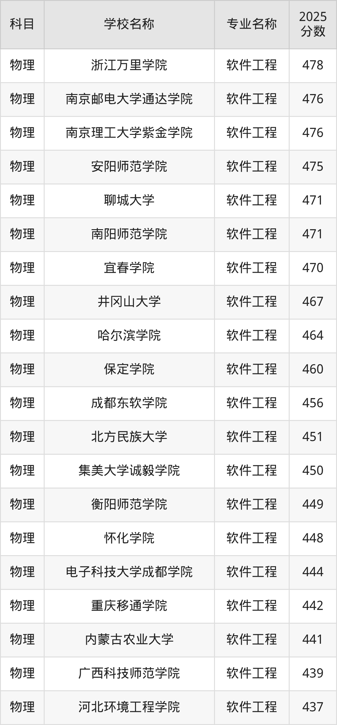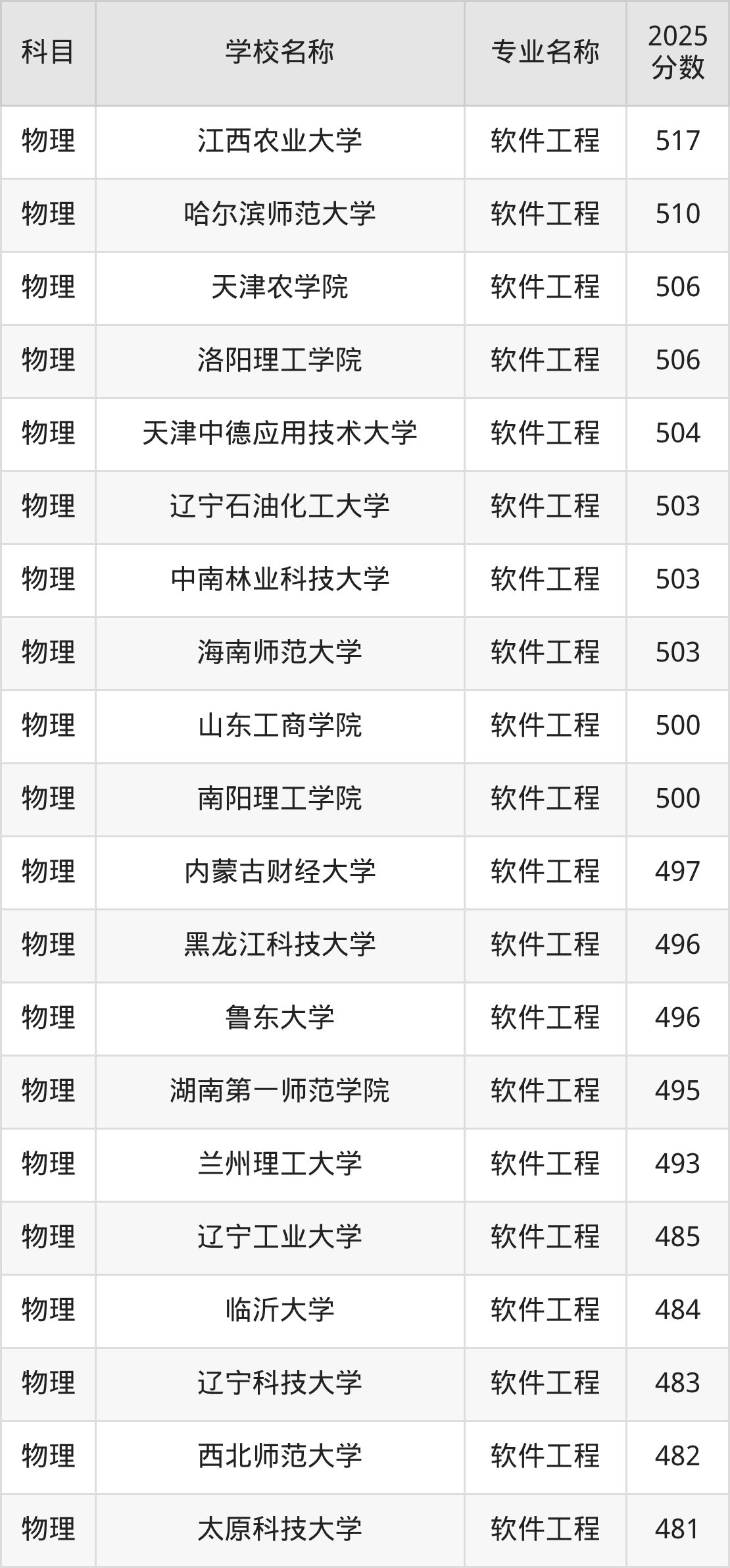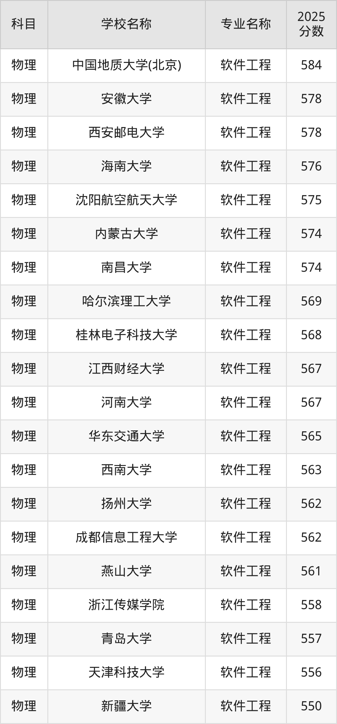 下文将为大家展示吉林省大学软件工程专业2025年在吉林高考的最低录取分数线!