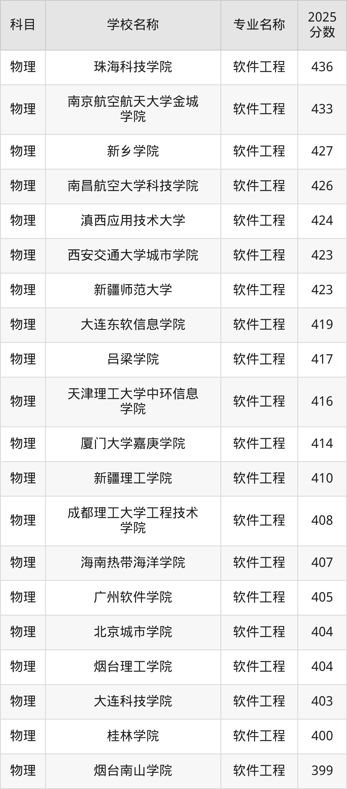 圆梦小编根据吉林2025年高考物理组专业分,将开设了软件工程专业且位于吉林省内的大学按照“录取分”从高到低排序,得出了以上榜单。