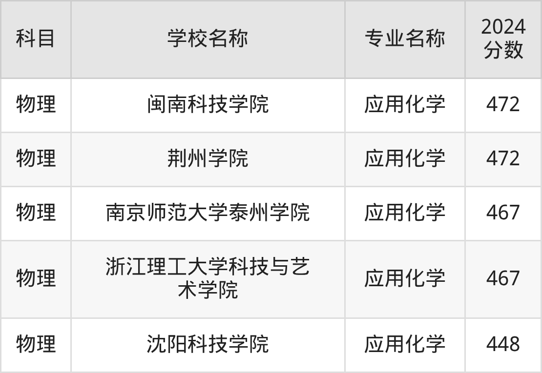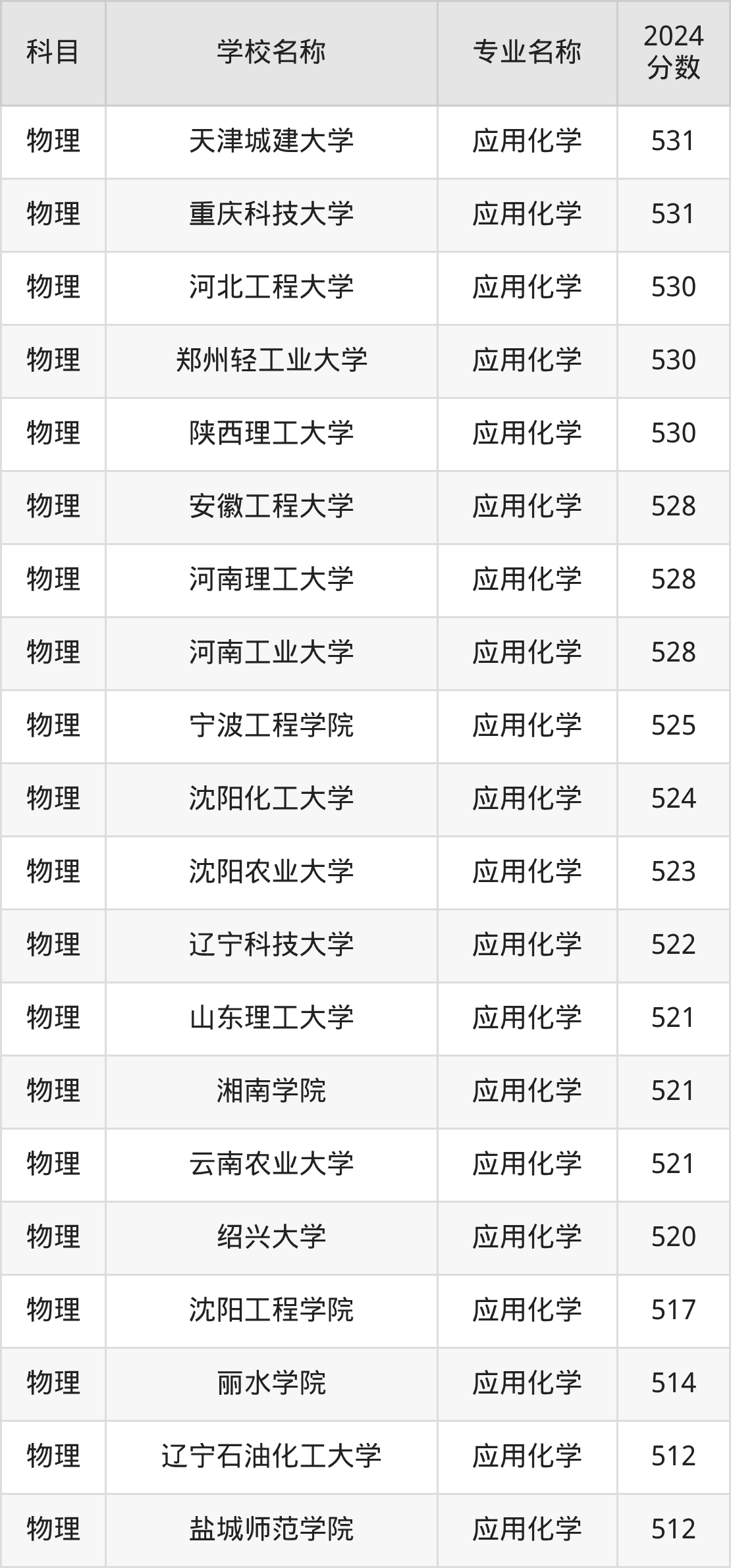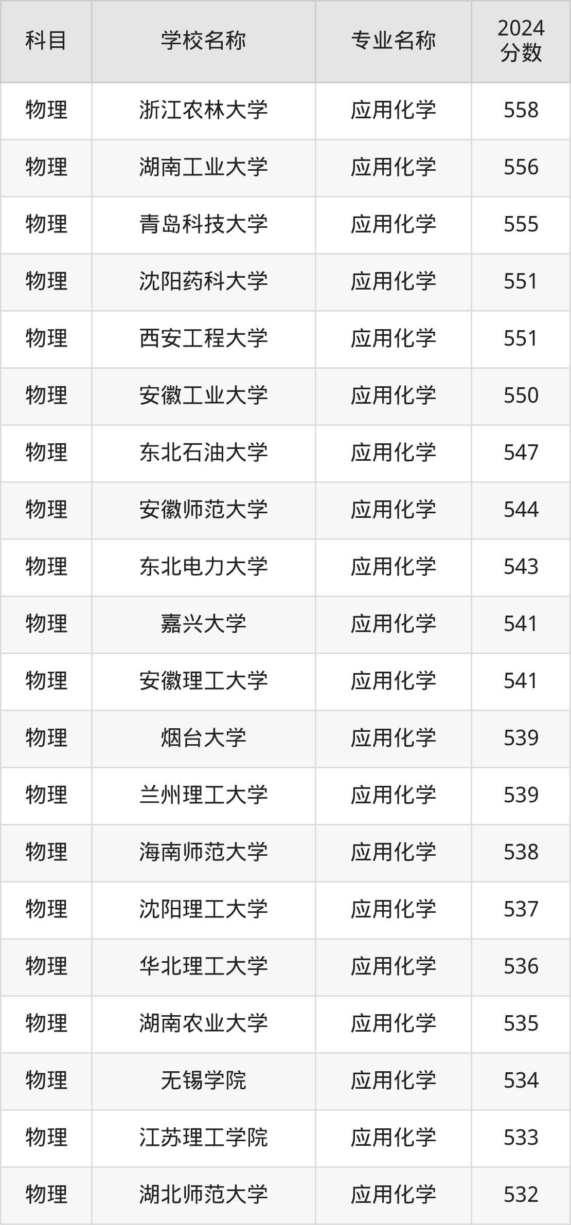 | 东华理工大学 | 应用化学(国家 专项) | 534 |